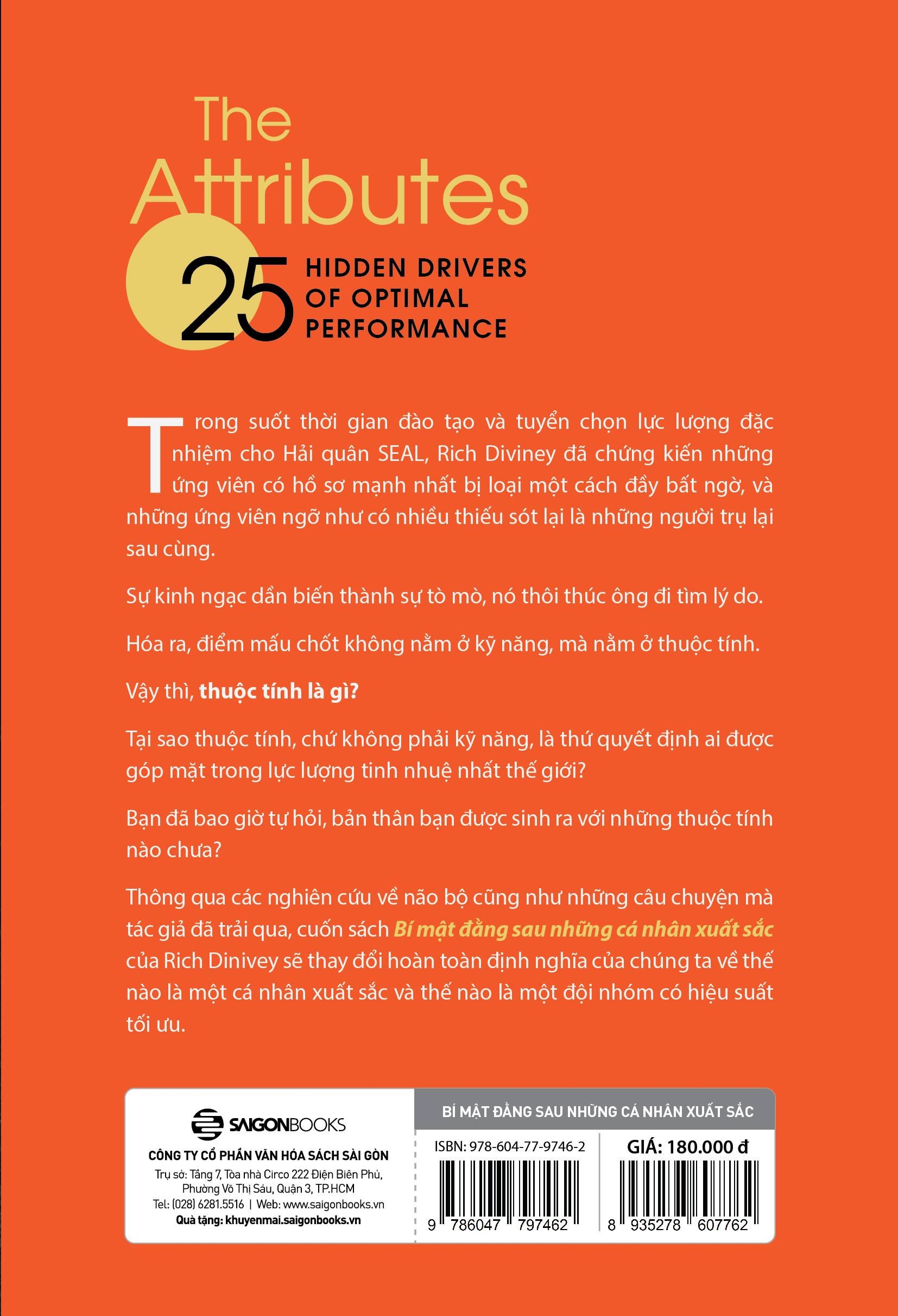 Cuốn sách này sẽ cung cấp cho bạn khả năng trả lời những câu hỏi đó cho chính mình. Không phải tất cả các thuộc tính đều phù hợp với mọi người. Ví dụ như lính SEAL mang một nền văn hóa độc đáo với một nhiệm vụ cụ thể và cần một tập hợp các thuộc tính rất cụ thể. Danh sách thuộc tính đầy đủ có thể khác nhau đối với doanh nhân, vận động viên, bác sĩ phẫu thuật hoặc diễn viên hài.