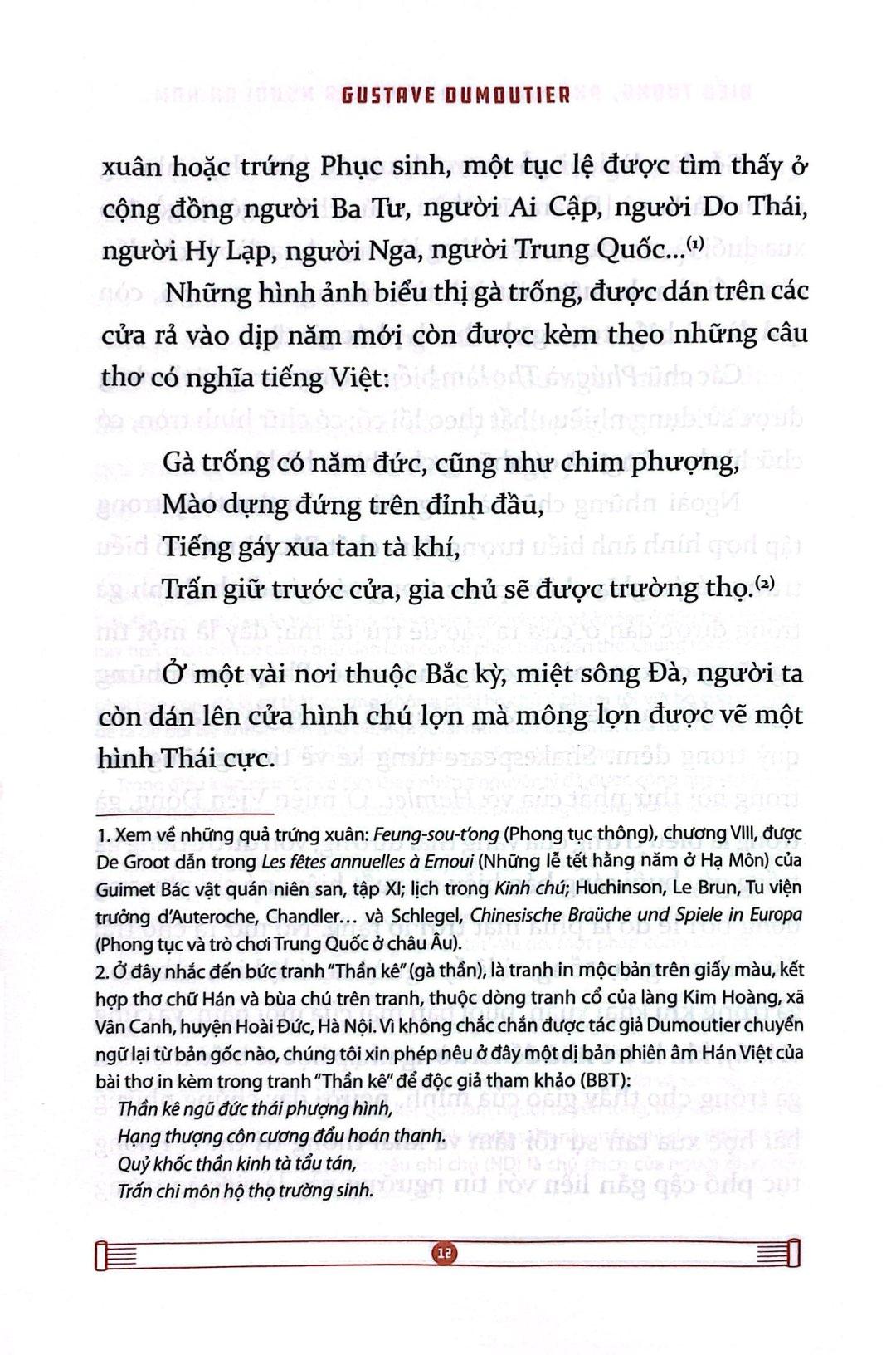 Thờ cúng tổ tiên là tín ngưỡng truyền thống của người Việt Nam, được người dân mọi tầng lớp hết sức trọng thị. Trong quan niệm của người Việt, mỗi đồ thờ được đặt trên ban thờ đều mang ý nghĩa tâm linh quan trọng, bởi đó là thứ kết nối giữa dương gian và âm thế, thứ con người gửi gắm những kỳ vọng và mong ước tốt đẹp. Và để hiểu hơn về ý nghĩa, vai trò của mỗi biểu tượng, phù hiệu và món đồ thờ được đặt trên ban thờ của người Việt, cuốn sách BIỂU TƯỢNG, PHÙ HIỆU VÀ ĐỒ THỜ CỦA NGƯỜI AN NAM, một trong số nhiều nghiên cứu của Gustave Dumoutier về văn hóa dân gian Bắc kỳ, sẽ là nguồn tư liệu hữu ích.