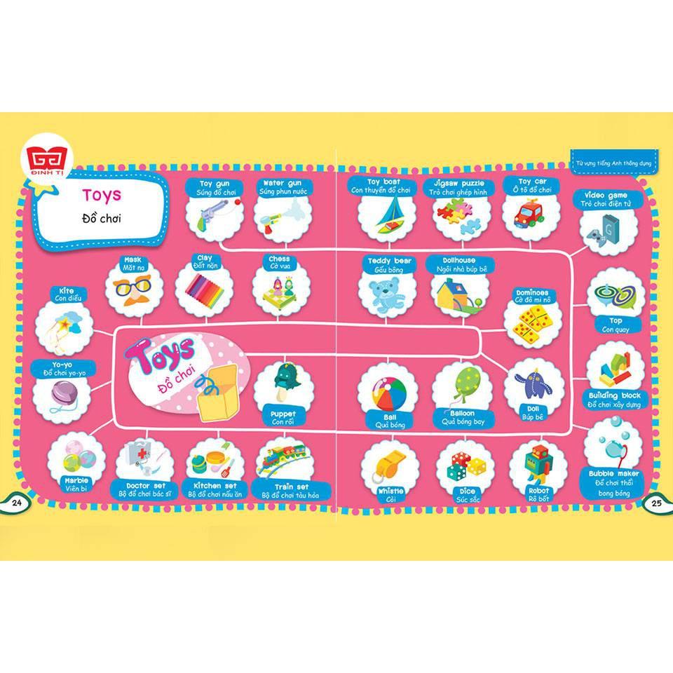 Các chủ đề từ vựng, mẫu câu tiếng Anh được trình bày dưới dạng sơ đồ logic, rõ ràng và dễ hiểu. Với mỗi chủ đề, trẻ sẽ được học một cách chi tiết, đa dạng các từ vựng, mẫu câu với các hoàn cảnh, tâm trạng khác nhau để giao tiếp phù hợp.