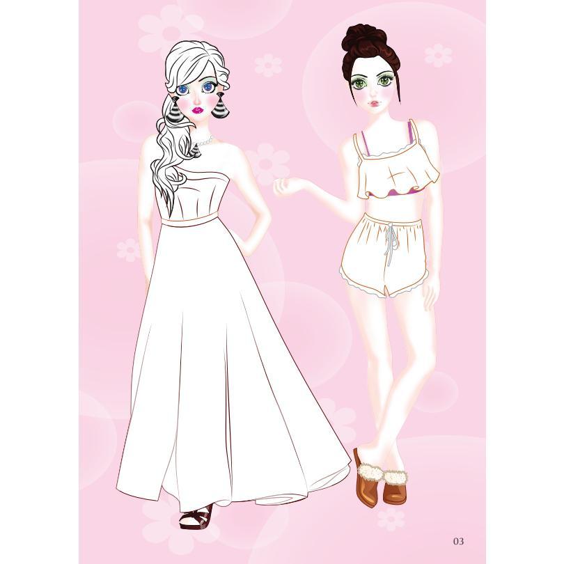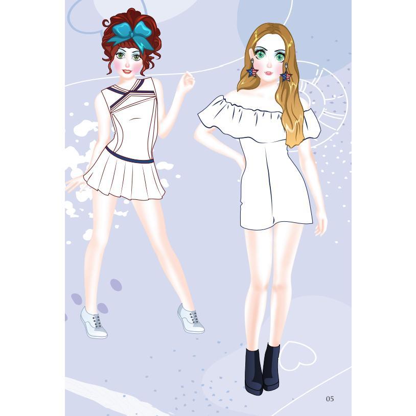 Bộ sách Dán hình & tô màu sticker girl fashion Nhà thiết kế tài ba trọn bộ 5 tập