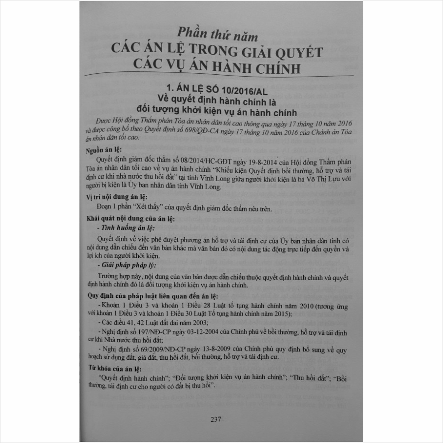 Ngoài ra cuốn sách còn cung cấp cho bạn đọc các hướng dẫn của Tòa án nhân dân tối cao trong xét xử án hành chính, một số Án lệ có liên quan đến đất đai và Luật Đất đai năm 2024 để bạn đọc tham khảo khi cần thiết.