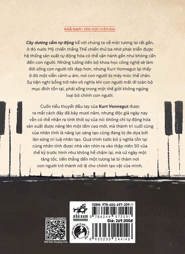 Cây dương cầm tự động kể với chúng ta về một tương lai rất gần, ở đó nước Mỹ chiến thắng Thế chiến thứ ba nhờ phát triển được hệ thống sản xuất tự động hóa có thể vận hành gần như không cần đến con người. Những tưởng tiến bộ khoa học công nghệ sẽ làm đời sống con người tốt đẹp hơn, nhưng Kurt Vonnegut lại thấy ở đó một viễn cảnh u ám, nơi con người bị máy móc thế chân. Sự tiện nghi bỗng trở nên vô nghĩa khi con người mất đi toàn bộ mục đích tồn tại, phải sống trong một thế giới không ngừng loại bỏ chính con người.