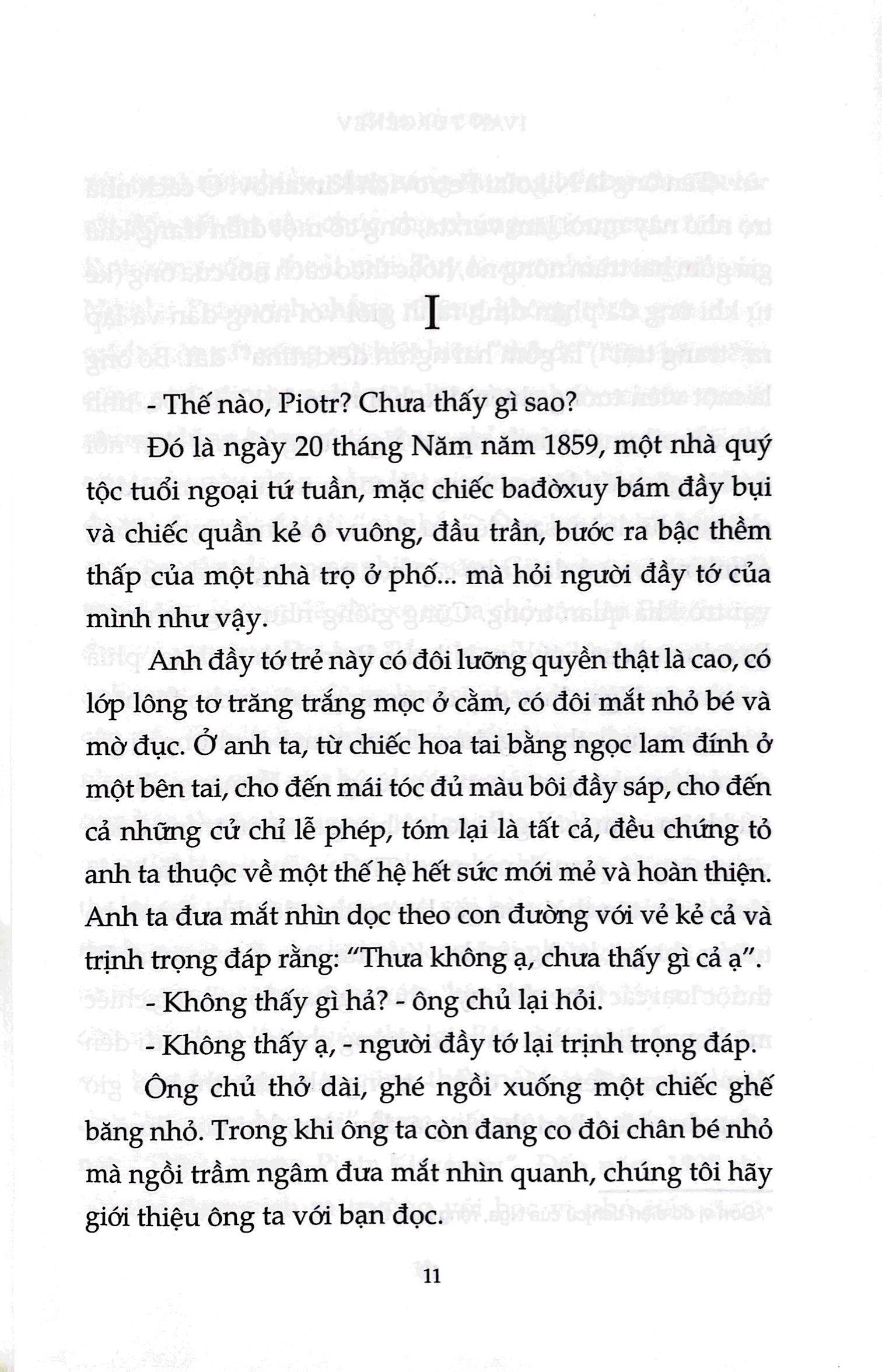Khi Arkadi, chàng sinh viên mới tốt nghiệp về nhà, cha và ông bác quý tộc của cậu đã khó chịu xiết bao với một người bạn lạ hoắc đi theo. Đó là Bazarov, kẻ nổi loạn, kẻ dám “không thừa nhận bất cứ quyền uy nào, cũng như chẳng chấp nhận một nhân tố nhỏ nhoi nào về đức tin”. Kiệt tác của Turgenev về xung đột giữa các thế hệ đã làm nước Nga bị sốc khi xuất bản lần thứ nhất vào năm 1862 và ngày nay vẫn còn nguyên sự tươi mới, trực tiếp, kích động như đã luôn như vậy với những độc giả lần đầu chạm trán mẫu nhân vật hư vô nổi tiếng của nó.