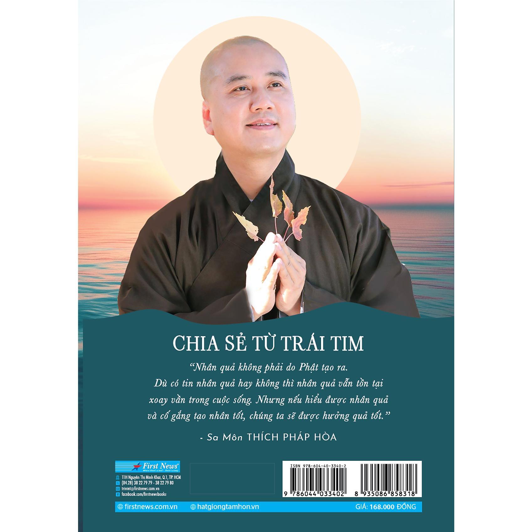 - 50 bài giảng Nhân Quả thiết thực trong cuộc sống của Sa Môn Thích Pháp Hòa - Khi thế giới không ngừng phát triển, những vấn đề tinh thần ngày càng được mọi người quan tâm nhiều hơn. Trong thời gian gần đây, những chủ đề liên quan đến Phật giáo nhận được sự quan tâm của rất nhiều người, đặc biệt là trên các phương tiện thông tin đại chúng. Tuy nhiên, Phật giáo hiện nay lại rất đa dạng do trải qua quá trình “trăm hoa đua nở” suốt hơn 2.500 năm, nên việc hiểu được tinh thần cốt yếu của đạo Phật để áp dụng vào đời sống của bản thân cũng không phải chuyện đơn giản. Thầy Thích Pháp Hòa là một trong những tu sĩ Phật giáo được đông đảo Phật tử mến mộ cả ở trong và ngoài nước. Thầy sinh trưởng tại Cần Thơ nhưng theo gia đình định cư tại Canada từ nhỏ. Mặc dù sống ở nơi đất khách, đạo tâm của thầy không hề suy giảm mà càng được củng cố mạnh mẽ. Trong suốt gần 40 năm tu học và hành đạo nơi xứ người, thầy và sư phụ của mình (Hòa thượng Thích Thiện Tâm) đã gầy dựng nên hai tu viện Trúc Lâm và Tây Thiên khang trang tại Edmonton (Canada), trở thành địa điểm tu học của Phật tử không chỉ ở Bắc Mỹ mà còn từ khắp nơi trên thế giới. Thầy đã chiếm được trái tim của nhiều đối tượng khán thính giả khác nhau bằng những lời giảng dễ hiểu, gần gũi và có tính ứng dụng cao vào đời sống. Nét đặc trưng trong phong cách của thầy là giảng giải Phật pháp thông qua những câu chuyện kể đời thường, đôi khi pha chút dí dỏm. Điều này khiến cho các thuật ngữ cao siêu trong kinh điển trở nên sáng tỏ hơn, và những giáo lý khô khan trở nên sống động và vô cùng hữu dụng. Bên cạnh đó, pháp môn Tịnh Độ mà thầy đang hướng dẫn cũng phù hợp với truyền thống hành trì xưa nay của phần đông Phật tử Việt Nam, khiến cho việc tiếp nhận giáo lý cũng dễ dàng hơn. Ngoài ra, một lý do khác khiến những lời giảng của thầy Thích Pháp Hòa được đông đảo đại chúng đón nhận và dễ đi vào lòng người là chính con người của thầy. Thầy dùng thân giáo nhiều hơn khẩu giáo: phong thái nhẹ nhàng, hòa ái, giản dị cũng như cách ứng xử trong mọi tình huống của thầy chính là bài pháp vô ngôn có uy lực nhất đối với Phật tử gần xa cũng như các đệ tử thân cận với thầy. Trong cuộc sống thường nhật, thầy luôn tỏa ra sự hoan hỉ, giản dị và từ bi không chỉ với đại chúng mà cả với các sư đệ và đệ tử trong chùa. Và người nghe cảm nhận rõ điều này thông qua những câu chuyện thầy kể. Quyển sách “Chia sẻ từ trái tim – 50 bài giảng nhân quả thiết thực trong cuộc sống” là tuyển tập 50 chủ đề được Ban biên tập tuyển chọn cẩn thận từ hàng trăm bài pháp thoại của thầy Pháp Hòa được nhiều người yêu thích. Những pháp thoại được chọn lọc và ghi lại theo tinh thần giữ nguyên văn nội dung thầy truyền đạt trực tiếp đến đại chúng cũng như phong thái tự nhiên, giản dị vốn có của thầy. Vì vậy, quý độc giả sẽ có thể cảm nhận được bầu không khí gần gũi, sinh động của buổi pháp thoại. Ngoài ra, các bài giảng cũng được Ban biên tập phân loại và sắp xếp theo các chủ đề, từ những vấn đề cơ bản, dễ tiếp nhận đến những điều chiêm nghiệm sâu sắc hơn, từ lý thuyết đến thực hành. Bên cạnh đó, quyển sách cũng dành một chương cho các mối quan hệ gia đình và xã hội, mang đến cho độc giả góc nhìn đầy trí tuệ và tình thương về những vấn đề mình thường gặp trong cuộc sống. Tuy các chủ đề giảng pháp rất đa dạng, nhưng những lời dạy của thầy Thích Pháp Hòa luôn nhất quán theo triết lý Nhân – Duyên - Quả. Nhờ đó, độc giả có thể dễ dàng tiếp thu và vạch ra con đường đi phù hợp với cá nhân mình mà không sợ bị lạc hướng khỏi chánh pháp. Trong bức tranh chung của Phật giáo ngày nay, hy vọng rằng quyển sách “Chia sẻ từ trái tim” của thầy Thích Pháp Hòa có thể đóng góp một nhân duyên nhỏ giúp độc giả hiểu hơn về đạo Phật, và nhận ra những ý niệm, triết lý thâm sâu mà chúng ta thường nghe nhắc đến hóa ra lại vô cùng gần gũi với đời sống.
