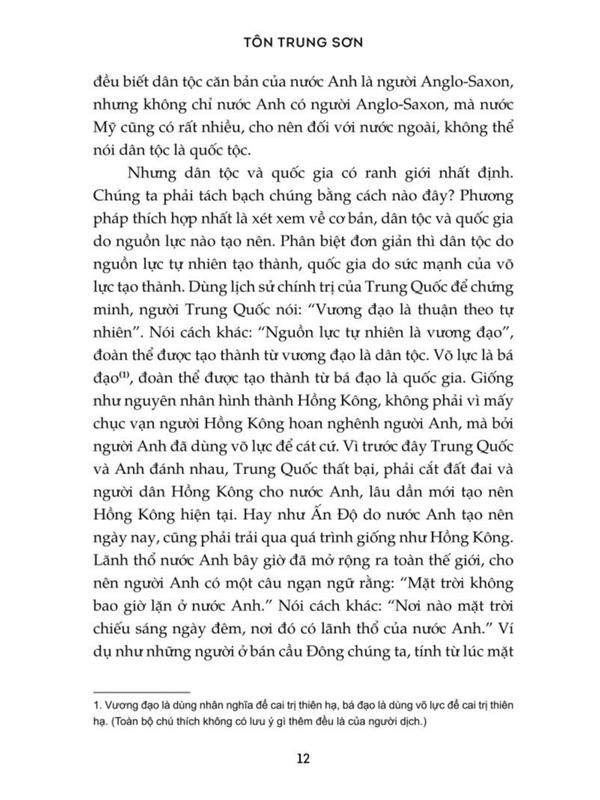 Mua tại TiktokTác giả: Tôn Trung Sơn Dịch giả NHƯỢNG LÊ Nhà xuất bản: Hồng Đức Kích thước 15.5 x 24cm Số trang 404 Ngày phát hành 2023 Giới thiệu sách CÙNG NHÌN LẠI TƯ TƯỞNG QUAN TRỌNG ĐÃ GÓP PHẦN ĐẶT NỀN MÓNG CHO CUỘC CÁCH MẠNG TÂN HỢI Ở TRUNG QUỐC! Chủ nghĩa tam dân là phát kiến có ý nghĩa lớn lao và có tầm ảnh hưởng sâu rộng của Tôn Trung Sơn. Chủ nghĩa tam dân bao gồm chủ nghĩa dân tộc, chủ nghĩa dân quyền và chủ nghĩa dân sinh. Trong đó, chủ nghĩa dân tộc là bảo bối giúp một quốc gia phát triển và khiến một dân tộc sinh tồn. Trong tình cảnh Trung Quốc bị Mãn Thanh thống trị và các nước phương Tây xâu xé, việc giành lại độc lập cho dân tộc, lật đổ Mãn Thanh, đánh đuổi phương Tây là điều kiện tiên quyết để dân được hưởng tự do, dân được sống hạnh phúc. Chủ nghĩa dân quyền thì chủ trương dân quyền bình đẳng, mọi cá nhân và đoàn thể chống đế quốc đều được hưởng quyền tự do, dân chủ. Và dân quyền chính là sức mạnh chính trị của nhân dân. Còn chủ nghĩa dân sinh thì góp phần giải quyết những vấn đề liên quan đến đời sống của nhân dân, sinh tồn của xã hội, sinh kế của quốc dân, sinh mệnh của quần chúng. Vì thế đôi khi Tôn Trung Sơn gọi chủ nghĩa dân sinh là chủ nghĩa xã hội, hay là chủ nghĩa cộng sản, hay chủ nghĩa đại đồng. Đối với Tôn Trung Sơn, chủ nghĩa dân tộc và chủ nghĩa dân quyền là cương lĩnh để giành quyền lợi quốc gia và độc lập dân tộc, coi chủ nghĩa dân sinh là cương lĩnh phát triển kinh tế. Tư tưởng chính trị này đã trở thành ngọn cờ tập hợp mọi lực lượng đấu tranh, sau này còn trở thành cương lĩnh chính trị của cuộc cách mạng Tân Hợi. Chủ nghĩa tam dân này cũng có ảnh hưởng rất lớn đến phong trào đấu tranh giành độc lập ở Việt Nam.