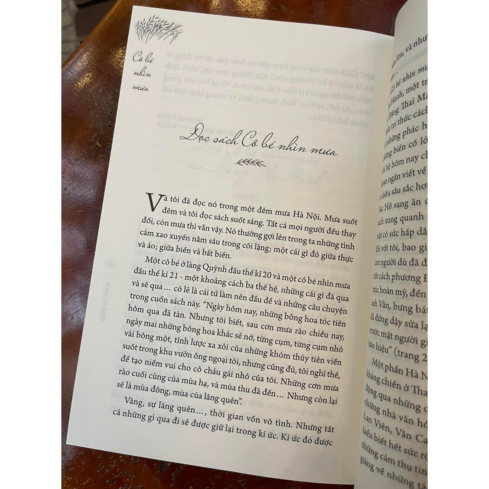 Nhà văn Nguyên Ngọc từng gọi Cô bé nhìn mưa là một lịch sử không ồn ào, bởi tác giả viết, cũng là đối thoại với chính mình, về cuộc đời. Đáng nói, Cô bé nhìn mưa được viết khi tác giả 78 tuổi - kí ức của một con người đi xuyên thế kỉ, có nét từng trải, sâu sắc, lịch lãm, am hiểu lẽ đời, lại vừa mang âm hưởng tươi vui hóm hỉnh của "cô bé nhìn mưa" bên cửa sổ làng Quỳnh năm nào. Hơn nữa, tác giả là người có tâm hồn biết cảm nhận và lưu giữ những ấn tượng bình thường của cuộc sống ngay từ nhỏ, biết kết hợp khéo léo khả năng phân tích của tư duy phương Tây và dòng cảm xúc liên tưởng của phương Đông. Bởi thế, đọc hồi kí của Đặng Thị Hạnh, không chỉ là đọc đời tư của một cá nhân, một con người rất cụ thể, mà là đọc về một thế hệ xưa để biết, để hiểu, ngoài ra còn là lắng nghe tiếng nói của một trí thức uyên bác về chính những "hồi ức" ấy. Đặng Thị Hạnh như tách ra làm đôi, một bên là dành cho ghi chép hiện thực, một bên là để chiêm nghiệm, suy ngẫm, nhất là số lượng trang không nhỏ kể về thế giới "sách vở", vô cùng ấn tượng.