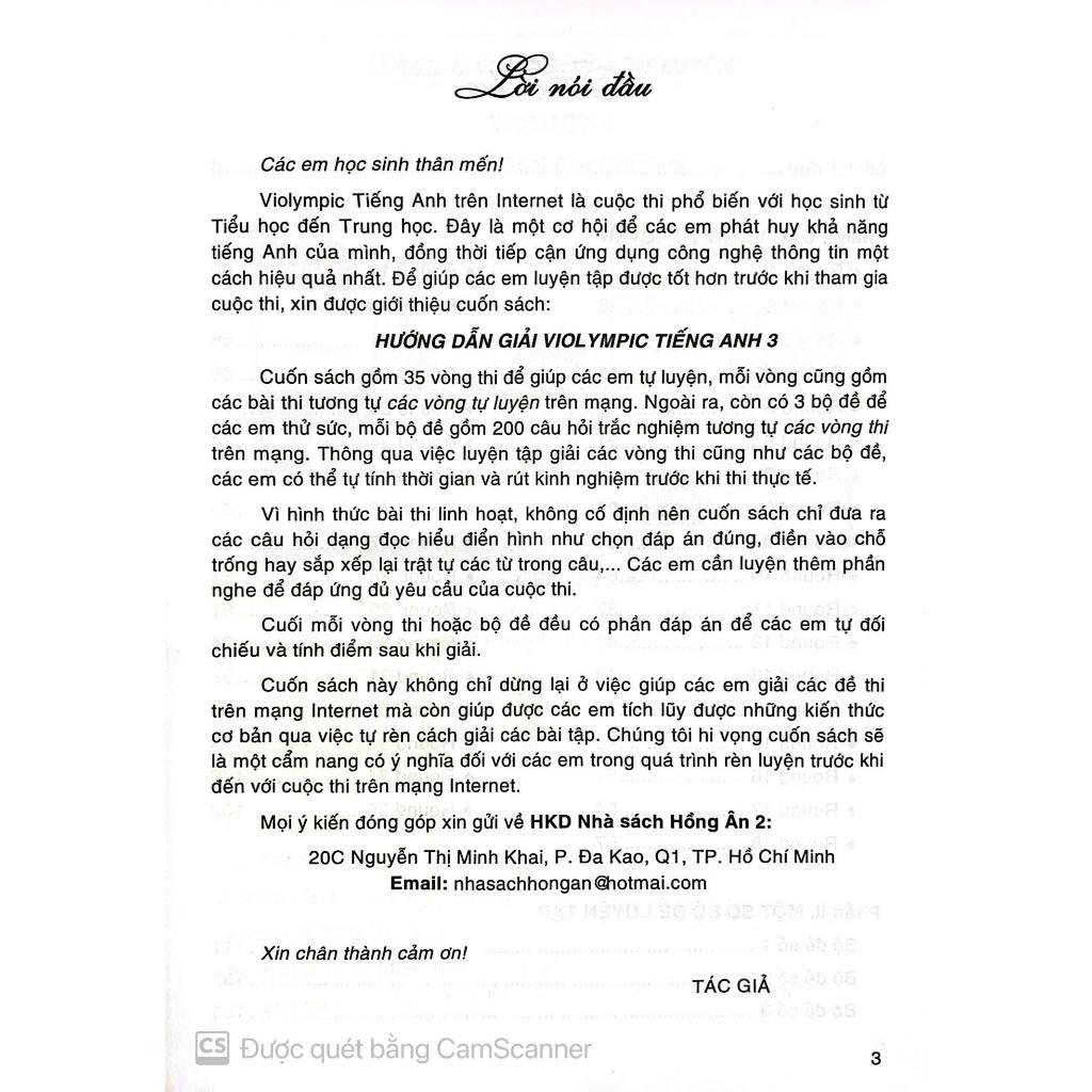 Giải tiếng Anh qua mạng Internet hiện nay đã và đang rất phổ biến đối với học sinh từ Tiểu học đến Trung học. Đây là một trong những điều kiện để các em phát triển được khả năng tiếng Anh của mình, không những thế còn giúp các em ứng dụng công nghệ thông tin một cách hiệu quả nhất. Cuộc thi ra đời đã giúp các em thay thế các trò chơi điện tử bằng những bài tập tiếng Anh, đó là một việc làm rất có ý nghĩa. Để giúp các em luyện tập được tốt hơn trước khi đến với máy tính, xin giới thiệu cuốn sách Hướng Dẫn Giải Violympic Tiếng Anh 4.