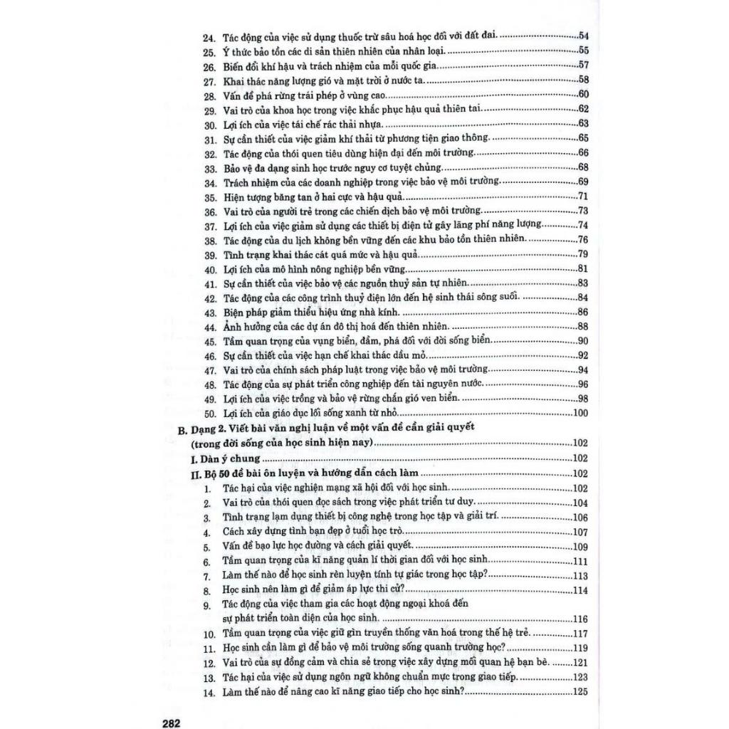 - Các Dạng Nghị Luận Xã Hội Ngữ Văn 9 (Dành Cho Học Sinh Lớp 9 Vào Lớp 10 Theo Cấu Trúc Đề Thi Năm 2025) Cuốn sách “CÁC DẠNG NGHỊ LUẬN XÃ HỘI NGỮ VĂN 9 - Dùng cho học sinh lớp 9 và ôn thi vào lớp 10 - Theo cấu trúc đề thi năm 2025” được biên soạn nhằm hỗ trợ quý thầy cô và các em học sinh trong quá trình dạy và học Ngữ văn 9, chuẩn bị cho kì thi vào lớp 10 THPT sắp tới. Với nội dung được biên soạn theo định hướng phát triển năng lực và phẩm chất của Chương trình GDPT mới, cuốn sách còn có thể giúp các em hệ thống hóa kiến thức các dạng bài nghị luận xã hội, cải thiện khả năng tư duy và lập luận logic. Nội dung cuốn sách tập trung vào các dạng bài nghị luận về một vấn đề cần giải quyết – là dạng bài viết trọng tâm của chương trình Ngữ văn 9, có thể được nhiều tỉnh thành sử dụng để ra đề thi vào lớp 10 THPT. Ngoài phần cung cấp lí thuyết, cuốn sách còn đưa ra hệ thống đề bài phong phú, có dàn ý chi tiết, giúp các em hiểu rõ cách thức xây dựng một bài văn nghị luận chặt chẽ, logic. Nội dung cuốn sách bao gồm: