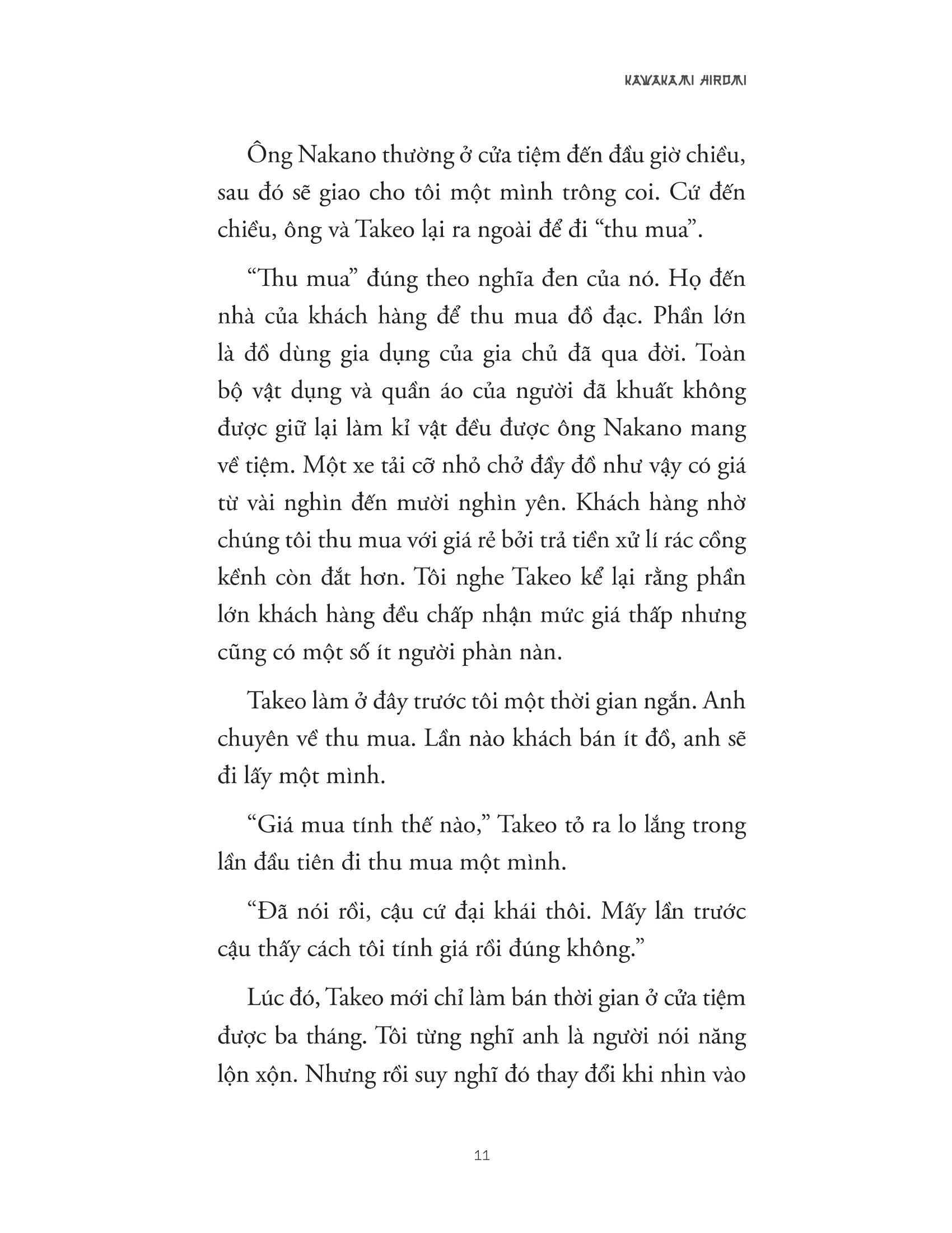 Những đồ vật được bán tại Cửa tiệm đồ cũ Nakano trông có vẻ rất bình thường như những nhân viên và khách hàng đến giao dịch tại đây. Nhưng giống như họ, chúng cũng nắm giữ nhiều bí mật. Nếu xem xét cẩn thận, ta sẽ thấy chúng hiển lộ vô số dấu hiệu của sự ngông cuồng, của niềm vui, nỗi đau khôn lường, và những bí ẩn sâu xa trong trái tim con người.