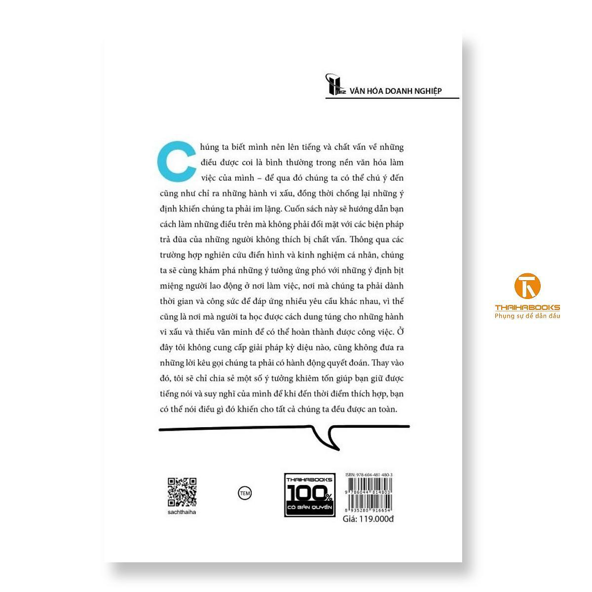[ThaiHaBooks] Cuốn sách Dám lên tiếng của tiến sĩ David Naylor sẽ hướng dẫn bạn cách lên tiếng mà không phải đối mặt với các biện pháp trả đũa của những người không thích bị chất vấn. Thông qua các trường hợp nghiên cứu điển hình và kinh nghiệm cá nhân, chúng ta sẽ cùng khám phá những ý tưởng ứng phó với những ý định “bịt miệng người lao động” ở nơi làm việc, nơi mà chúng ta phải dành thời gian và công sức để đáp ứng nhiều yêu cầu khác nhau, vì thế cũng là nơi mà người ta học được cách dung túng cho những hành vi xấu và thiếu văn minh để có thể hoàn thành được công việc.