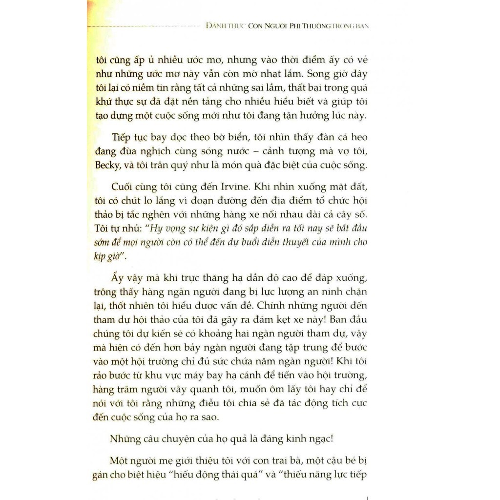 Giới thiệu về sách Đánh Thức Con Người Phi Thường Trong Bạn Đánh Thức Con Người Phi Thường Trong Bạn của Anthony Robbins là một hành trình khai phá tiềm năng bên trong mỗi người, được viết với mong muốn đánh thức “con người phi thường” đang ngủ quên. Cuốn sách trình bày các nguyên tắc nền tảng để tạo ra sự thay đổi bền vững, cùng ba bước cơ bản để cải thiện cuộc sống: nâng tầm bản thân, thay đổi niềm tin hạn hẹp, và điều chỉnh chiến lược. Phát hành năm 2021 bởi First News - Trí Việt và NXB Tổng Hợp TP.HCM, đây là cẩm nang giúp độc giả làm chủ cảm xúc, cơ thể, mối quan hệ, tài chính, và thời gian để phát huy tối đa sức mạnh cá nhân.