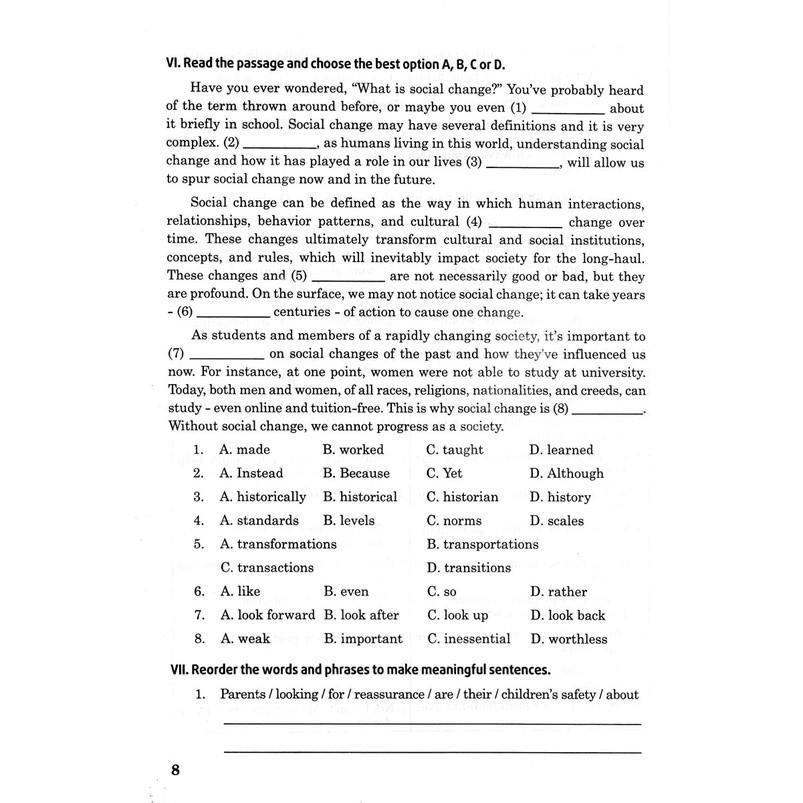 Sách có bố cục chặt chẽ theo từng đơn vị bài học, các đề kiểm tra được sắp xếp rõ ràng theo từng chủ điểm. Hi vọng sách sẽ giúp ích cho các em trong việc học tập, rèn luyện, và phát triển năng lực giao tiếp tiếng Anh.