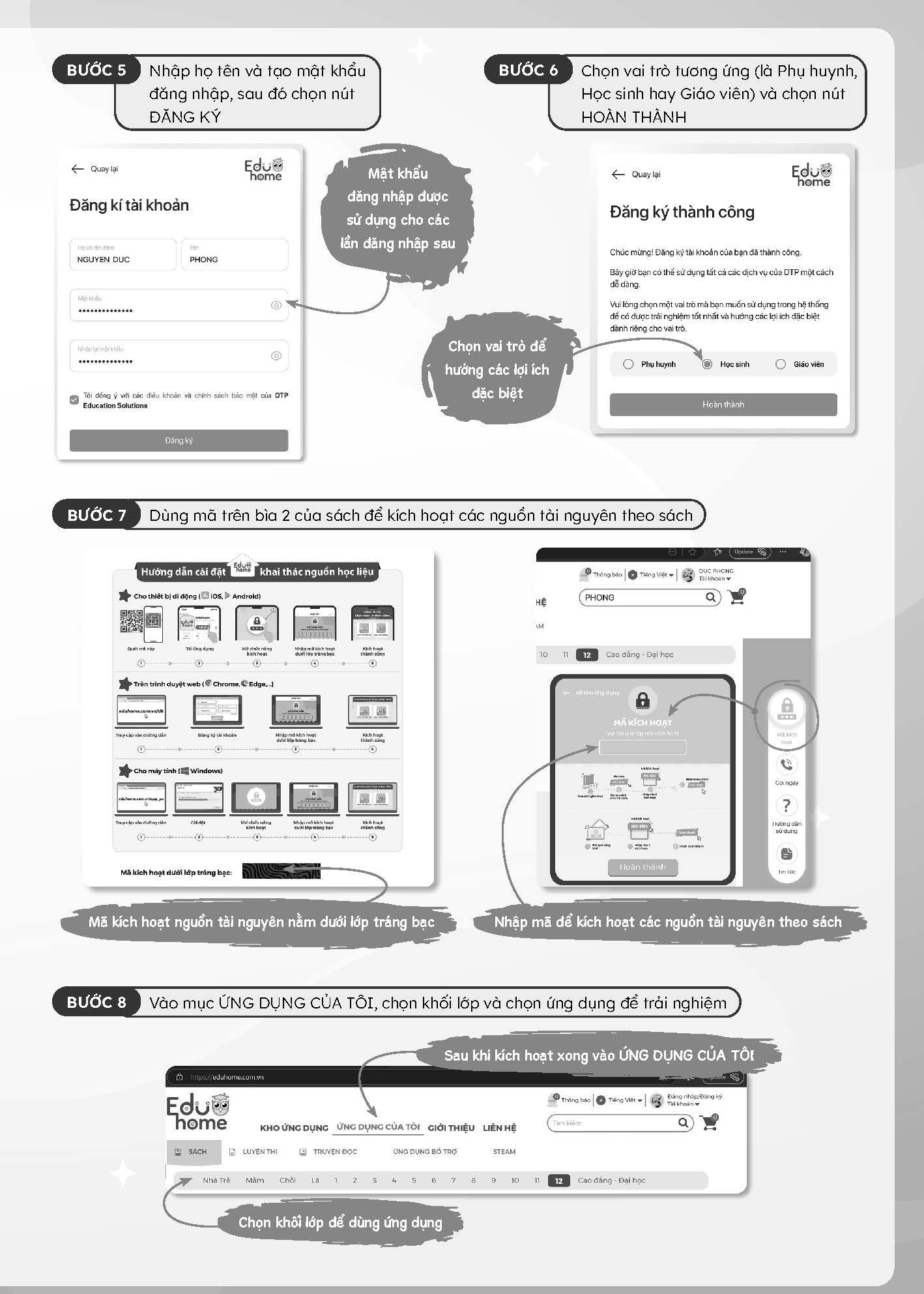 Tặng kèm mã kích hoạt ứng dụng Giải đề trực tuyến – Chấm bài tự động (Online Practice) và sách mềm eBook