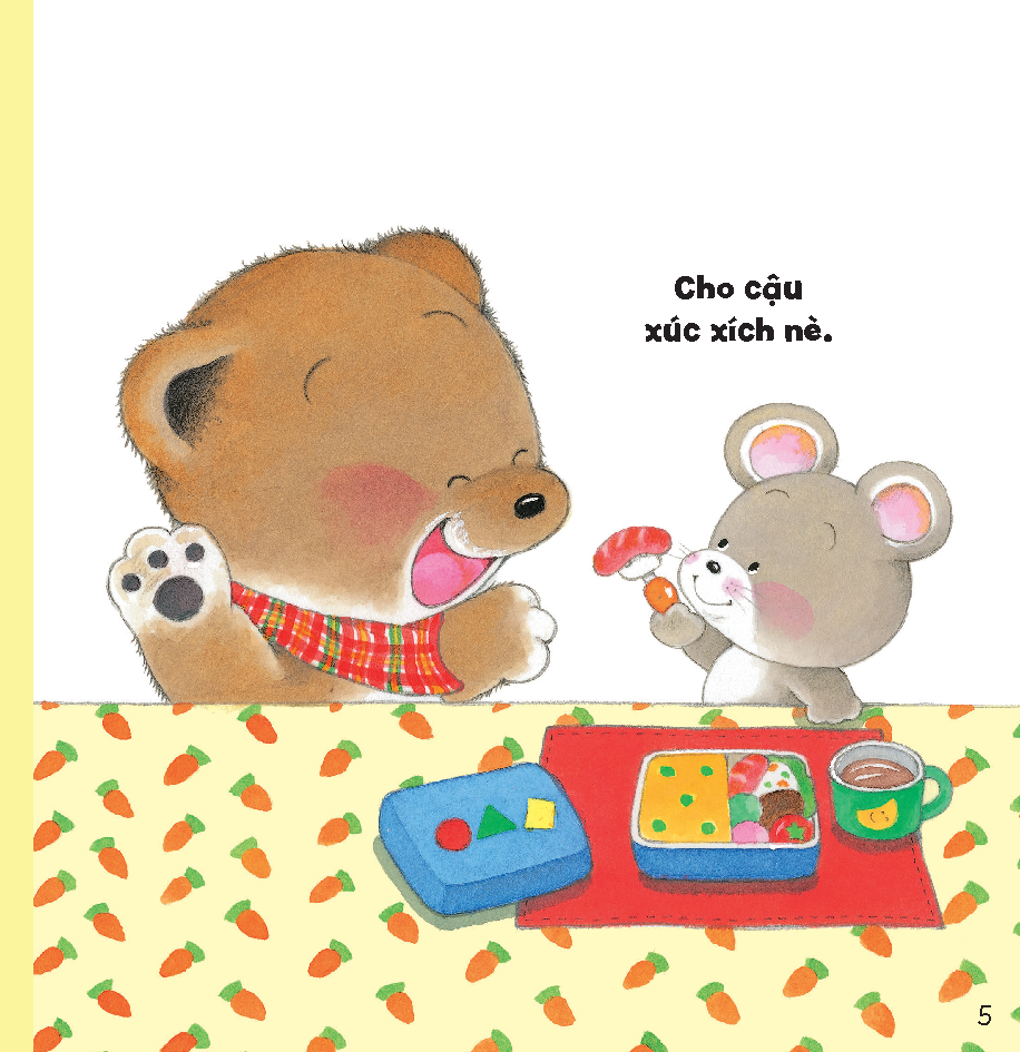 Hãy cùng Gấu con Kuma xem cơm hộp của các bạn nào! Chúng ta hãy cùng chia sẻ đồ ăn cho nhau nhé.