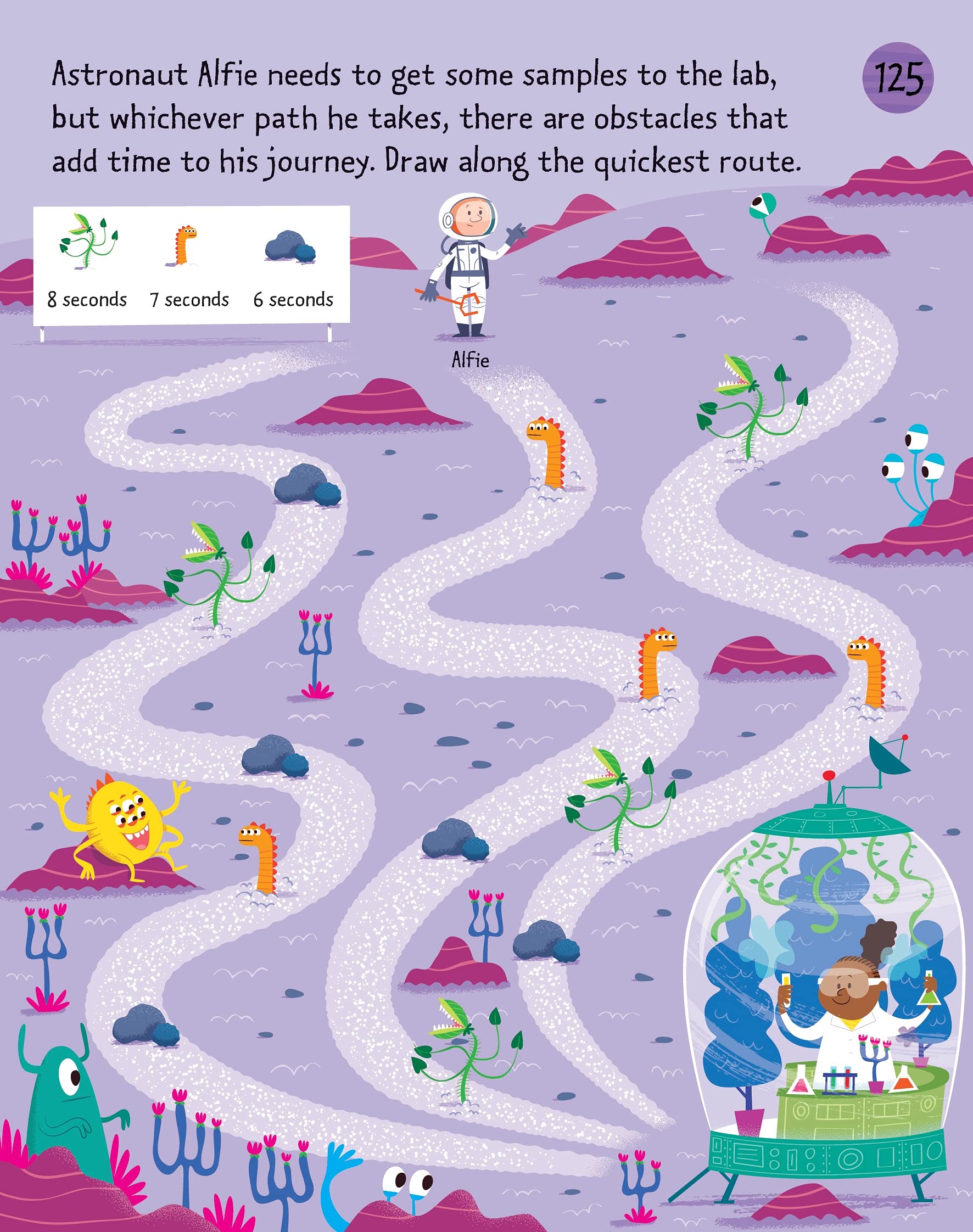 Blast off to outer space with this colourful collection of picture, word and number puzzles. Entertaining activities include cracking an alien code, finding routes through galaxy mazes, spot the difference and lots more. All the answers are at the back of the book.