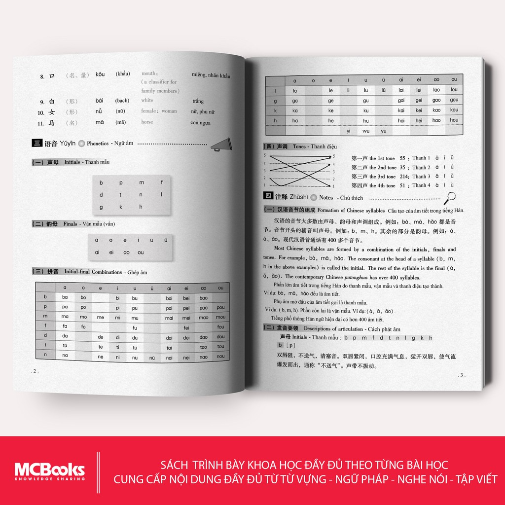 Các bài học trong “Giáo trình Hán ngữ 2 Tập 1 Quyển hạ phiên bản 3″ được Mcbooks thiết kế như sau: 1. Bài đọc, 2. Từ mới, 3. Chú thích, 4. Ngữ âm, Ngữ