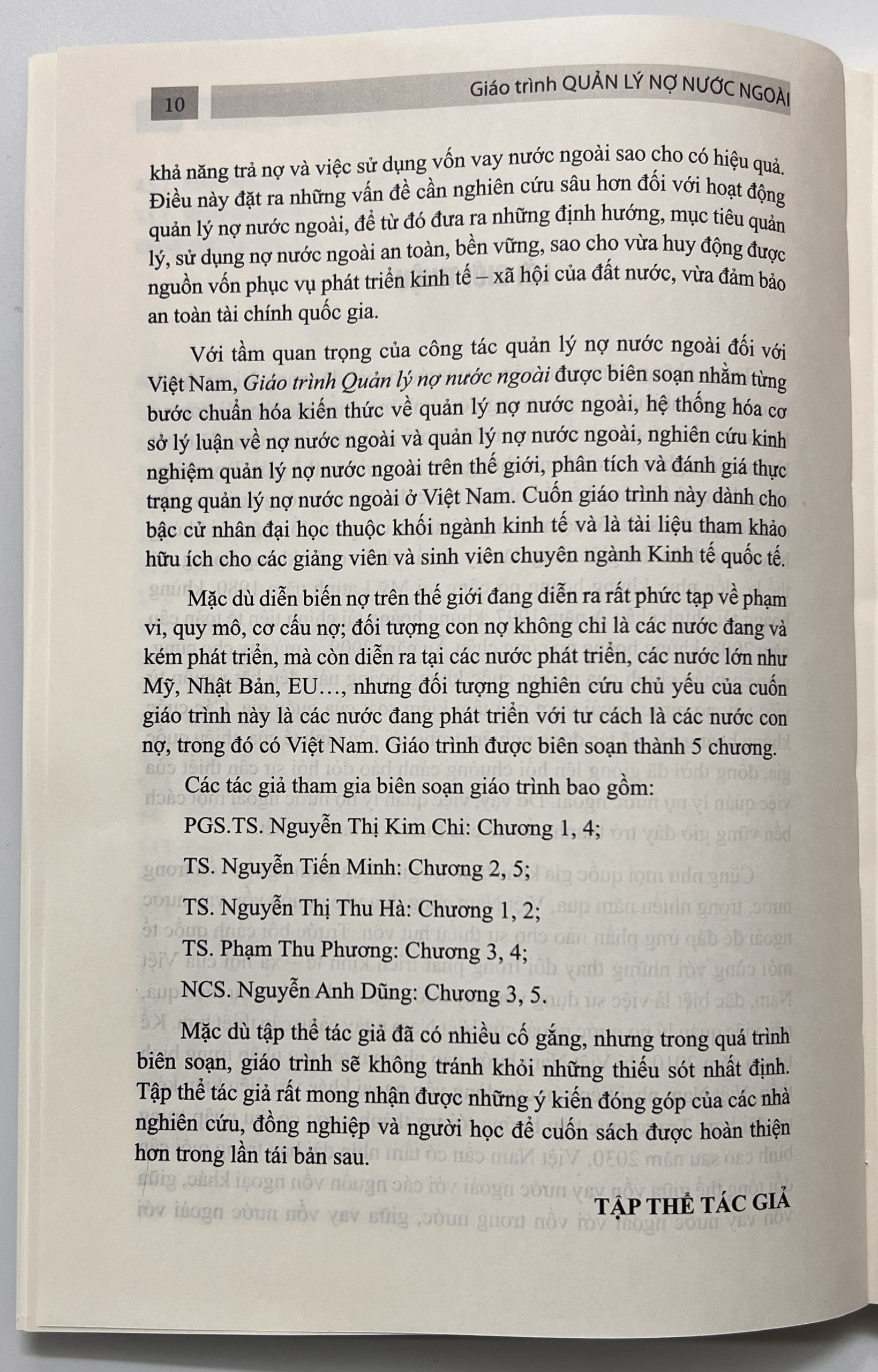 Mỹ, Nhật Bản, EU..., nhưng đối tượng nghiên cứu chủ yếu của cuốn giáo trình này là các nước đang phát triển với tư cách là các nước con nợ, trong đó có Việt Nam. Giáo trình được biên soạn thành 5 chương.