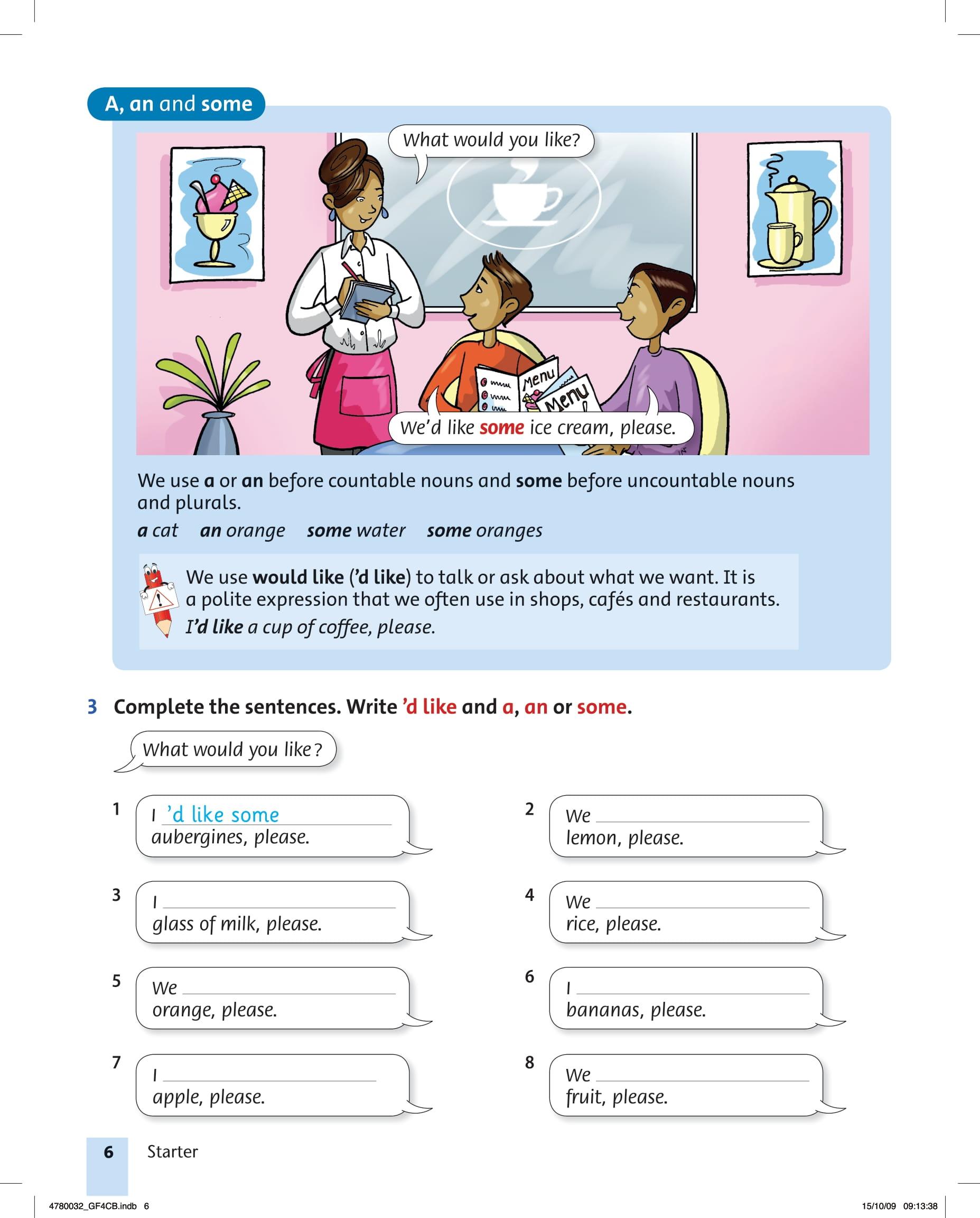 • Starter: Ôn tập Like + -ing, can và can't, a/an/some, be going to.