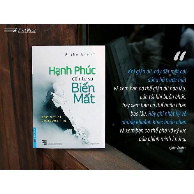 Trong “Hạnh phúc đến từ sự biến mất”, Ajahn Brahm trích tại nhiều điển tích, lời dạy của Đức Phật. Ông giảng giải, chia sẻ những câu chuyện về thiền định và hành trình giác ngộ qua giọng văn chân thực, đôi khi có chút hài hước. Cuốn sách là một sự lựa chọn sáng suốt cho những ai mong muốn tìm hiểu sâu sắc về Phật giáo, và đang nghiêm túc thực hành thiền định. Sách do Trần Thị Hương Lan dịch, First News thực hiện, NXB Tổng hợp ấn hành.