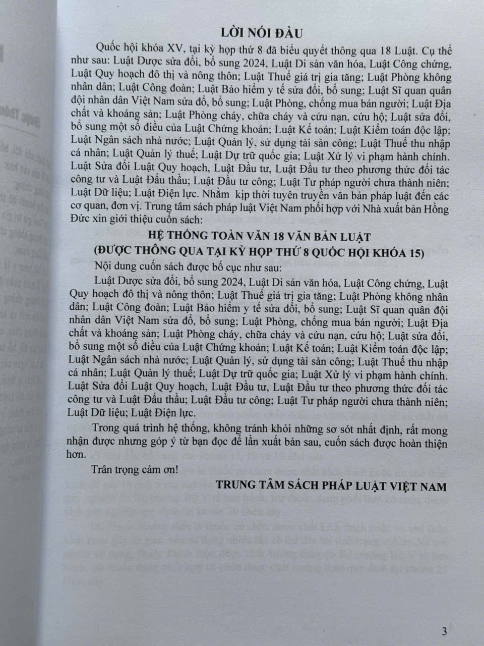 ✨Sách Hệ Thống Toàn Văn 18 Văn Bản Luật được thông qua tại Kỳ họp thứ 8, Quốc hội khóa 15 (V2552T)