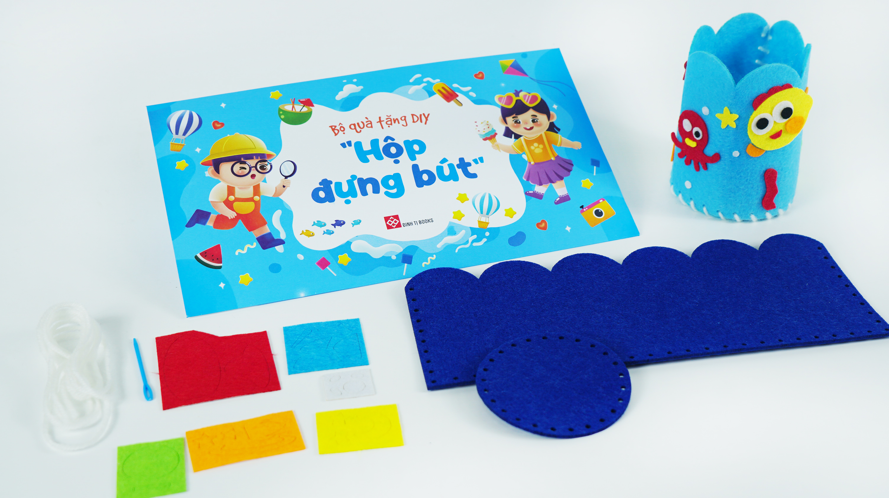 1. Bộ DIY - Hộp đựng bút: Gồm các nguyên liệu có sẵn để bé trổ tài rèn luyện sự khéo léo của đôi tay tạo nên sản phẩm vô cùng hữu ích trong cuộc sống của bé. Bé hãy cùng thoả sức sáng tạo tạo ra chiếc hộp đựng bút cho riêng mình nhé!