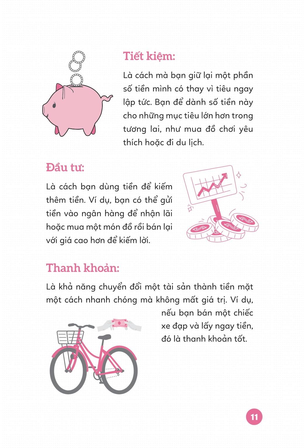 các em sẽ được làm quen với một khái niệm cực kỳ quan trọng: lãi suất kép, đây là thứ giúp tiền “sinh sôi nảy nở” nếu được tiết kiệm đúng cách. ngoài ra, chương này còn lý giải đơn giản về đầu tư, sẽ giúp các em hiểu rằng tiết kiệm hôm nay là bước đệm cho việc làm chủ tài chính ngày mai.