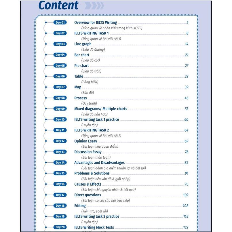 - Sách cung cấp lộ trình học cấp tốc IELTS Writing trong vòng 20 ngày: