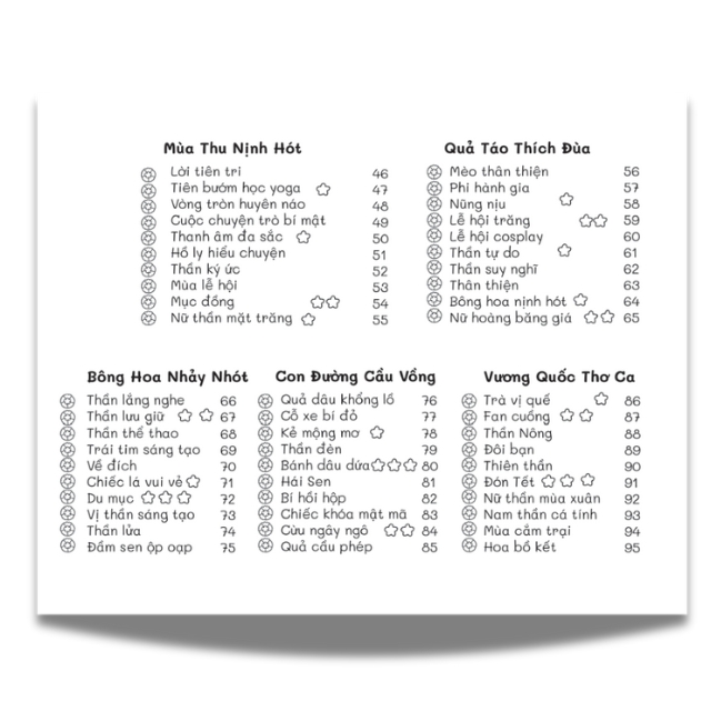 MÔ TẢ SẢN PHẨM : Ở tiệm bánh Mùa Thu – Sắc thu nơi tiệm bánh nhỏ “Chúng tớ cùng nhau chuẩn bị từng chút. Ngày tiệm mở cửa thì trời đã vào thu.” Sau thành công của cuốn sách tô màu đầu tay “Ở tiệm bánh Ngày Mai”, tác giả Múc đã trở lại với cuốn sách tô màu thứ hai, hứa hẹn mang tới những sắc màu tươi mới. Trong cuốn sách này, tiệm bánh nhỏ đã bước vào những ngày thu dịu dàng, bình yên. Vẫn có những mẩu đối thoại thú vị hàng ngày, vẫn là nơi những bạn chim sẻ dừng chân, nơi thơm mùi bánh vừa ra lò nhưng dường như tiệm bánh đã khoác lên mình một tấm áo mới, đang đợi bạn tô điểm lên bằng những sắc màu. “Ở tiệm bánh Mùa Thu” vẫn gồm những trang vẽ xinh xắn về cuộc sống hàng ngày nơi tiệm bánh nhỏ. Tiệm bánh khi trời vào thu sẽ mang dáng vẻ như thế nào? Là những ngày thu lá vàng xào xạc cùng tiếng chim ríu rít hay sẽ thơm mùi bơ sữa ngọt ngào của những chiếc bánh mới ra lò? Góc bếp nhỏ xinh tràn đầy nguyên liệu làm bánh, những bạn cún đáng yêu đang nghịch ngợm, những quả hồng treo trong gió và những quả sồi tượng trưng cho một khởi đầu mới,… tiệm bánh ngày thu trong mắt bạn sẽ có những gam màu nào? Trong “Ở tiệm bánh Mùa Thu”, ngoài việc tô màu bạn còn có thể học được thêm cách vẽ những bông tulip, bánh kem dâu tây thơm ngậy, chiếc đèn ngủ nhỏ xinh hay những họa tiết xinh xắn để tô điểm thêm cho bức tranh của mình. “Ở tiệm bánh Mùa Thu” như một món quà dành tặng bạn để bạn tự mình tạo nên những sắc màu tươi sáng cho những ngày u ám, cho những sắc xám đôi khi xuất hiện trong cuộc đời. Mong rằng cuốn sách nhỏ này có thể trở thành người bạn đồng hành đầy ấm áp và dịu dàng cùng bạn đi qua những ngày mệt mỏi, chông chênh trong cuộc sống bộn bề.