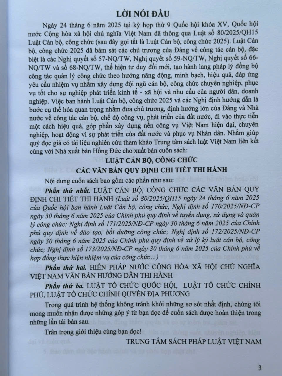 Nhằm phổ biến đến Quý Cơ quan, Đơn vị và Quý khách hàng thân thiết nắm bắt kịp thời những quy định mới nêu trên. Nhà sách Nam Việt xin trân trọng giới thiệu cuốn sách: Luật Cán Bộ, Công Chức 2025 – Các Văn Bản Quy Định Chi Tiết Thi Hành