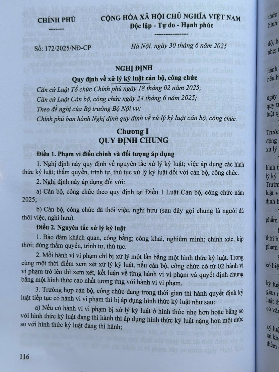 – Nghị định số 172/2025/NĐ-CP ngày 30 tháng 6 năm 2025 của Chính phủ quy định về xử lý kỷ luật cán bộ, công chức;
