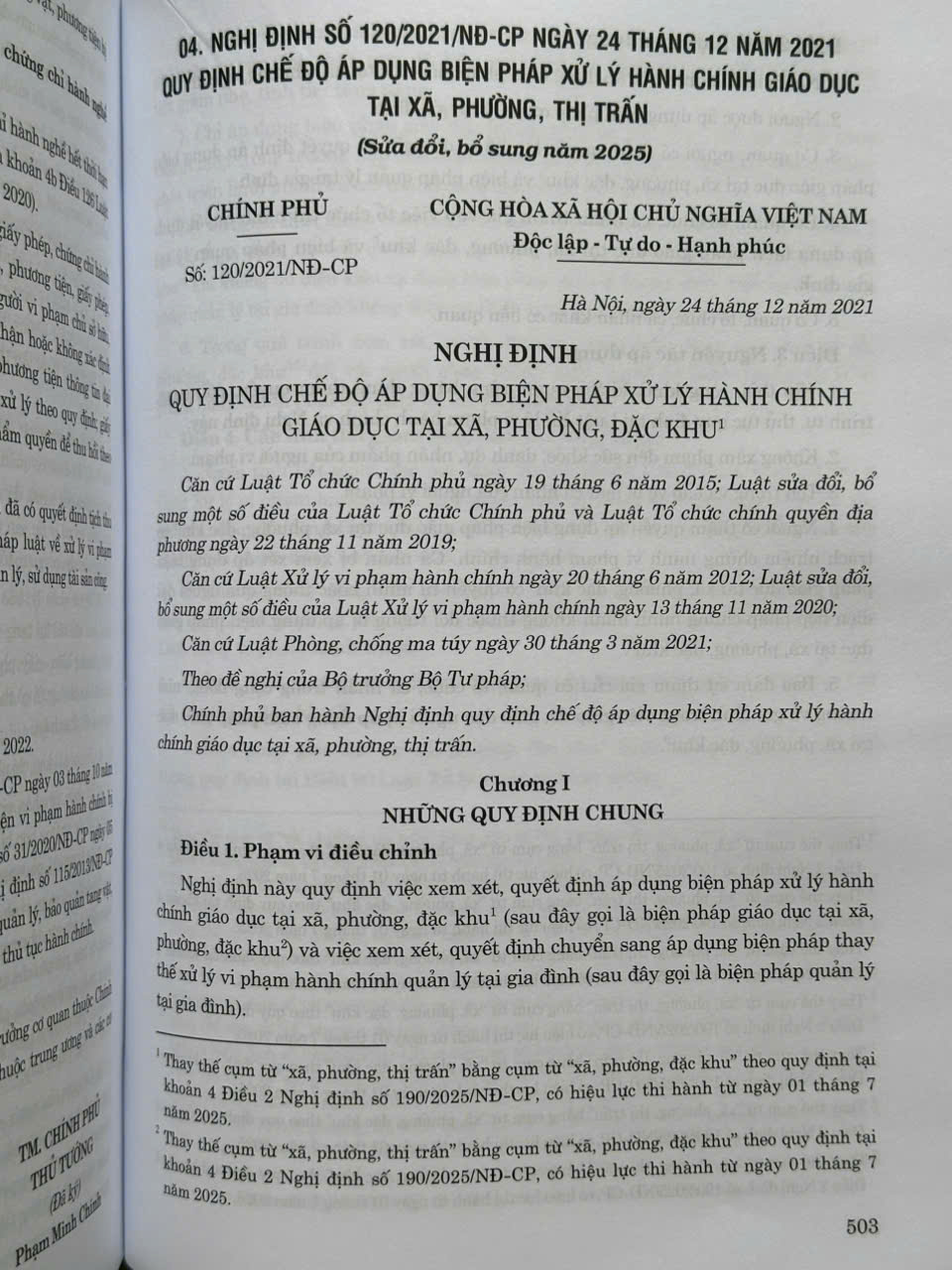 Ngày 24/12/2021, Chính phủ ban hành Nghị định số 120/2021/NĐ-CP quy định chế độ áp dụng biện pháp xử lý hành chính giáo dục tại xã, phường, thị trấn. Theo đó, một nội dung cơ bản