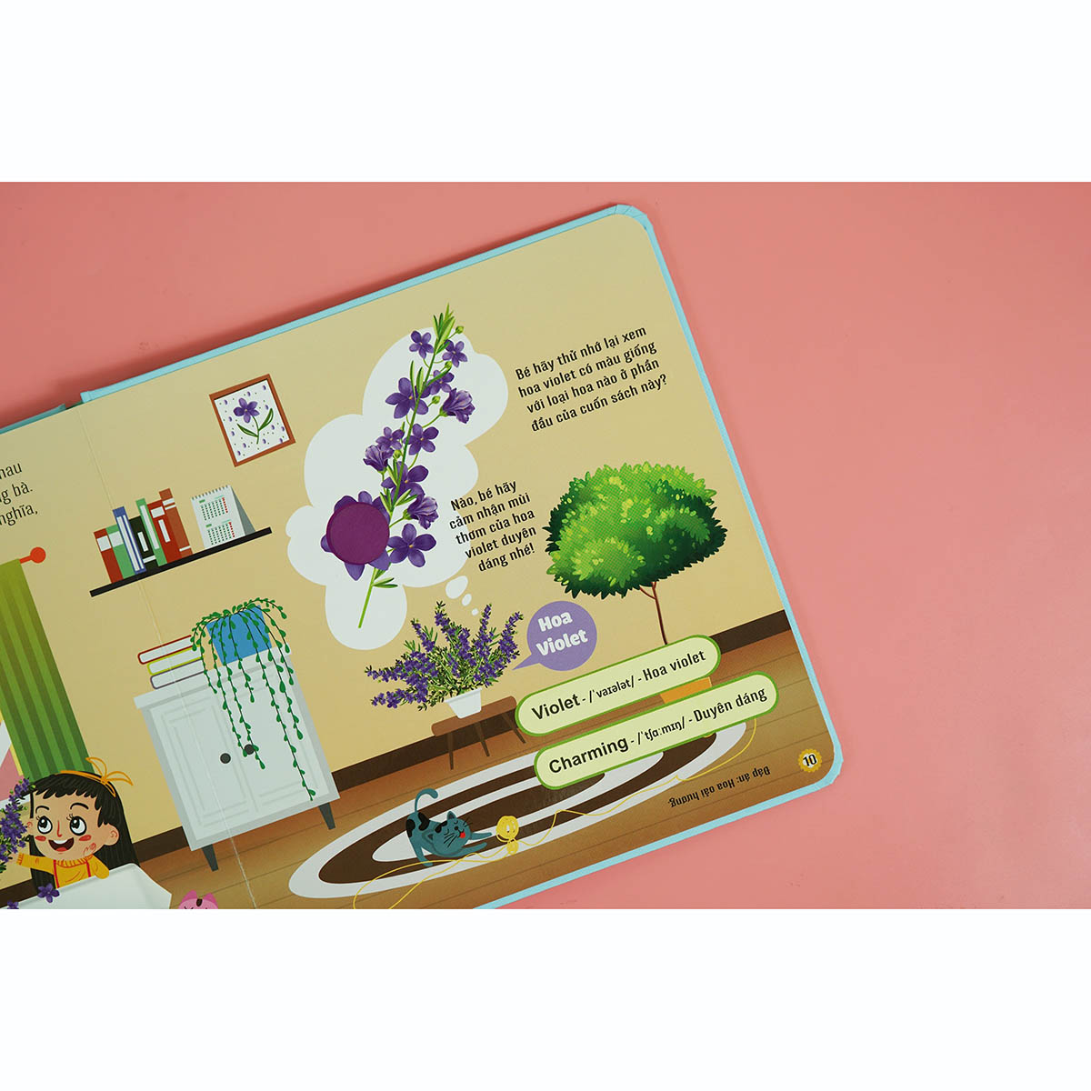 Điểm độc đáo của Sách mùi hương nằm ở các tem mùi hương được gắn kèm trong mỗi trang sách. Trẻ và bố mẹ có thể chà sát nhẹ tem mùi hương để ngửi mùi hương của các loại hoa và quả.