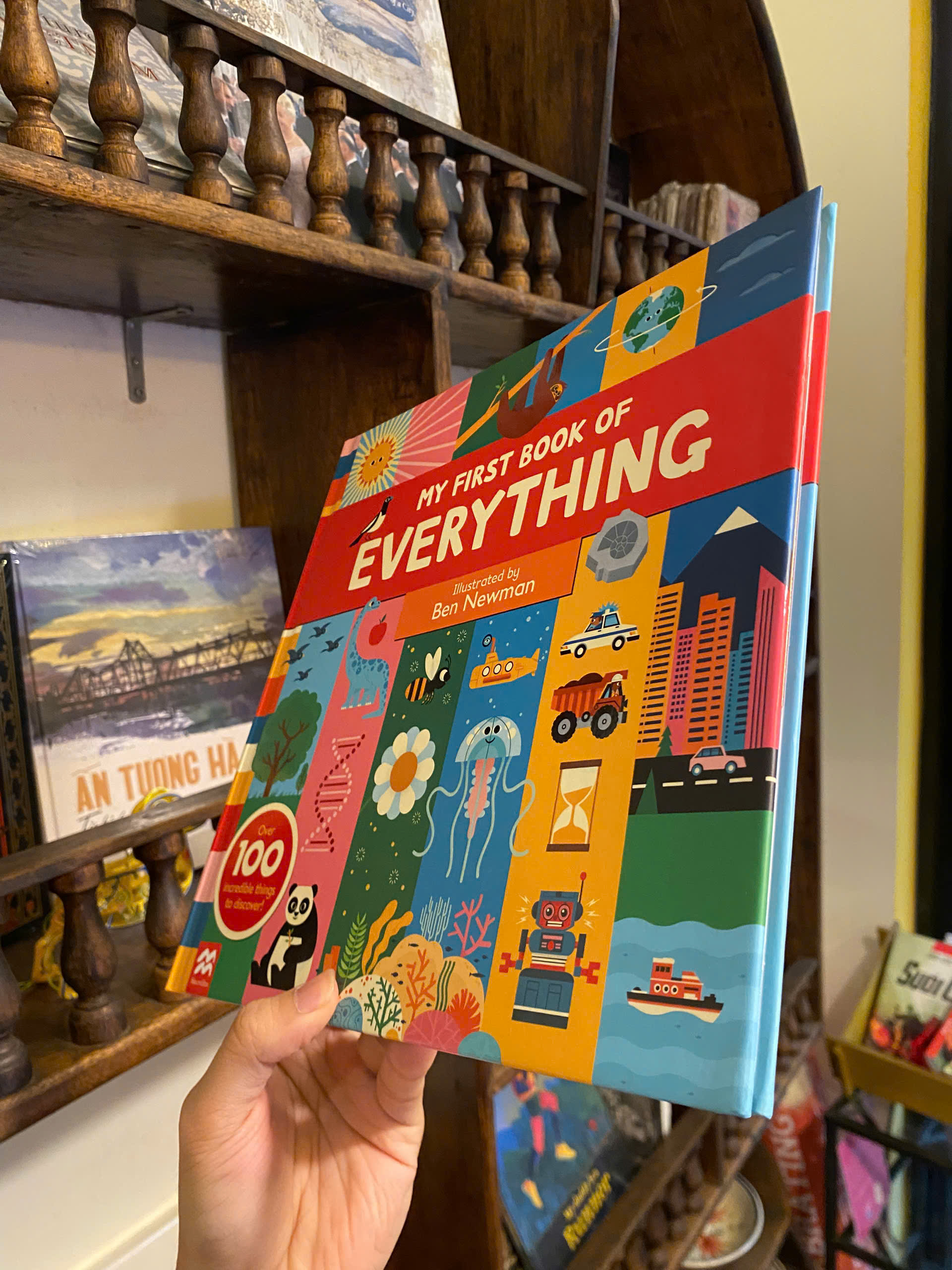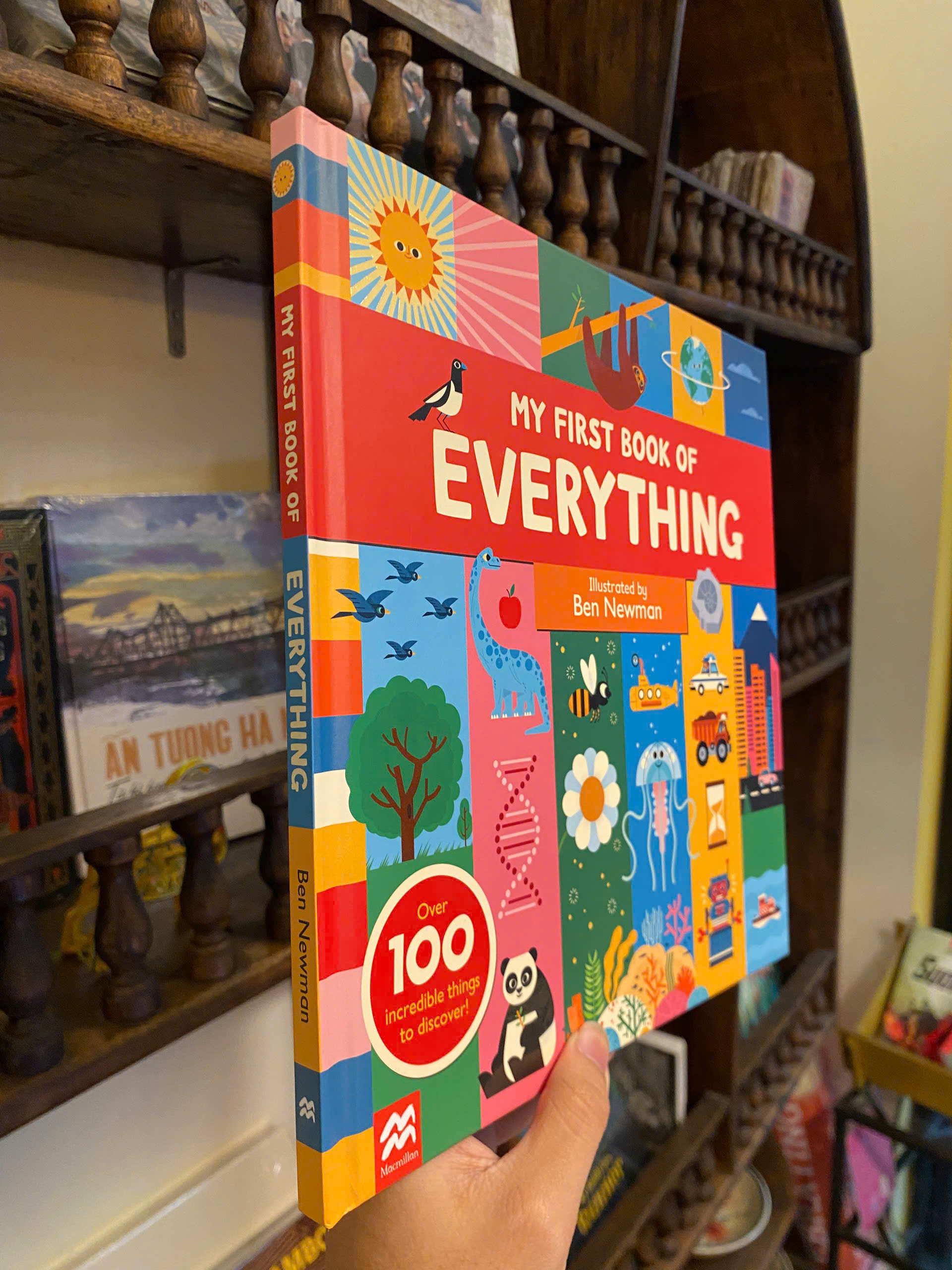 Hãy cùng khám phá hành trình trong cuốn sách "My First Book of Everything" (Cuốn sách đầu tiên về mọi thứ). Từ hệ mặt trời đến những chú tôm tít, mọi thứ trong vũ trụ của chúng ta đều thật kỳ diệu! Cuốn sách quà tặng phi hư cấu tuyệt đẹp này giới thiệu hơn 100 khái niệm, từ ngữ hoặc ý tưởng lớn từ thế giới (và vũ trụ!) xung quanh chúng ta, đồng thời giải thích từng khái niệm một cách ngắn gọn, khơi dậy trí tưởng tượng và khơi dậy sự tò mò, thích thú cho trẻ mẫu giáo. Với nội dung về vũ trụ, Trái Đất, cơ thể con người, các phát minh, lịch sử, thời gian và nhiều hơn nữa, cuốn sách "My First Book of Everything" hoàn hảo cho trẻ mẫu giáo đã tốt nghiệp chương trình "First Words" và đang bắt đầu tò mò về thế giới xung quanh.