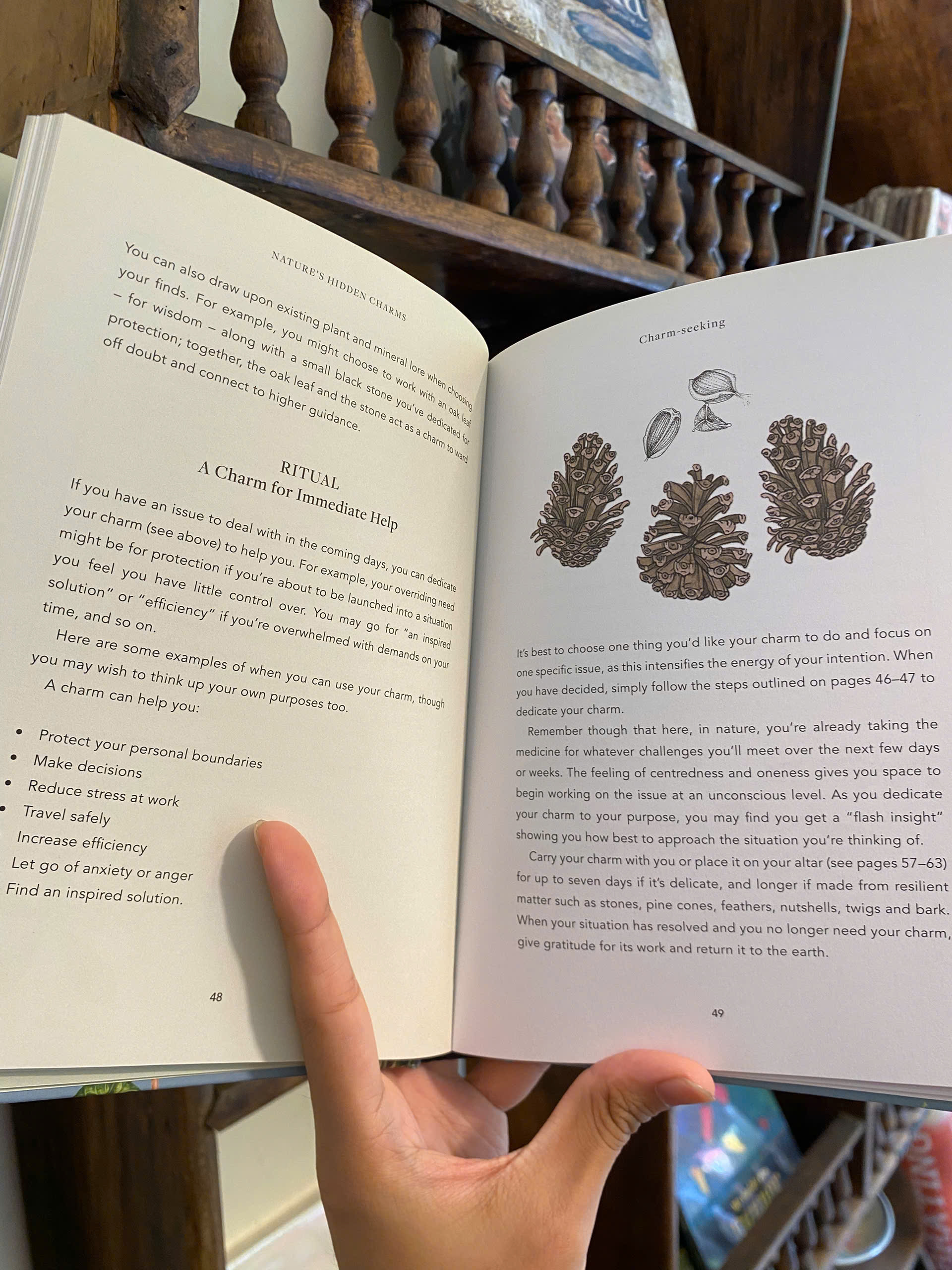 Việc hòa mình vào thiên nhiên giúp chúng ta thư giãn và kết nối với trí tuệ bẩm sinh. Khi được kết nối, chúng ta tự nhiên muốn thu thập: một vỏ sò hồng, chìa khóa cây sung dâu, một quả thông, hay một viên sỏi trắng tinh khôi đang gọi mời chúng ta. Nature's Hidden Charms là lời mời gọi bước vào thế giới tự nhiên, tìm hiểu văn hóa dân gian và khám phá những biểu tượng và món quà ẩn giấu mà ngay cả một cành cây hay hòn đá nhỏ bé nhất cũng có thể mang lại.