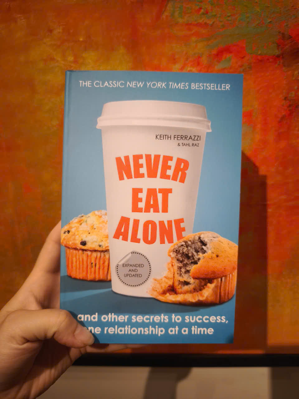 Never Eat Alone: Expanded and Updated trình bày các bước và tư duy mà Ferrazzi sử dụng để kết nối với hàng nghìn đồng nghiệp, bạn bè và cộng sự: những người mà ông đã giúp đỡ và những người đã giúp đỡ ông. Hình thức kết nối với thế giới này dựa trên sự hào phóng; Ferrazzi phân biệt việc xây dựng mối quan hệ thực sự với việc bắt tay thô lỗ.
