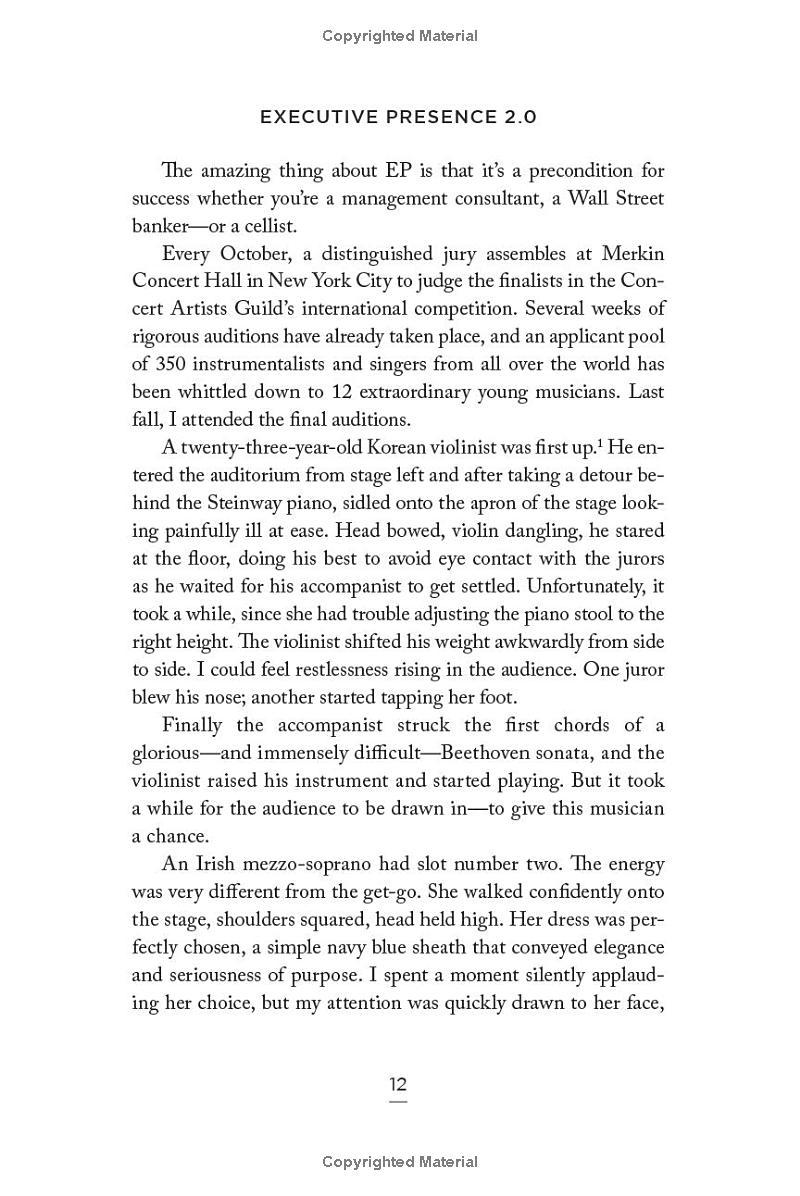 Hewlett’s most potent message, ten years ago and now, is that EP is eminently learnable. You don’t need to have the voice of James Earl Jones, the communication skills of Steve Jobs, or the athleticism of Michelle Obama to ace EP. You merely have to arm yourself with the tools and tactics contained in these pages.