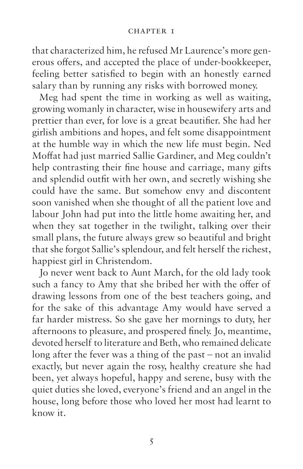 Good Wives Three years have passed since the events narrated in Little Women, and the four March sisters are approaching adulthood, with all its accompanying challenges and expectations. Meg is preparing for her wedding, Beth continues to struggle with her health, Jo is more than ever devoting herself to literature and Amy is about to go on a tour of Europe with her aunt. Their experiences, hopes and ambitions are set in counterpoint to each other, until the whole family is brought together by tragedy and misfortune. Following on the immediate commercial success of Little Women, Good Wives completes the story of the March sisters and their friend Laurie, and is, together with its prequel, Louisa May Alcott's crowning achievement and one of the most popular young-adult tales ever written.