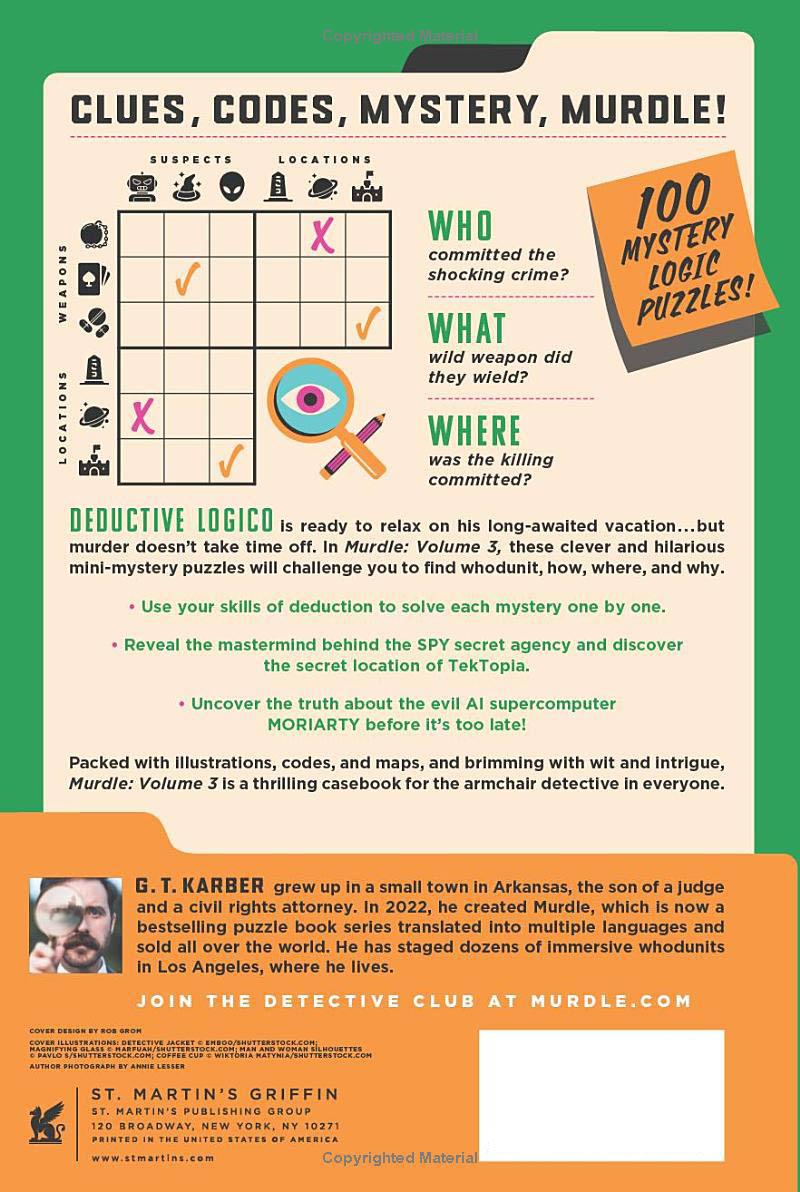 G. T. Karber, the creator of the popular online daily mystery game Murdle, presents the third collection of 100 original murder mystery logic puzzles―a perfect gift for mystery fanatics and puzzlers to hone their minds and solve a series of crimes.