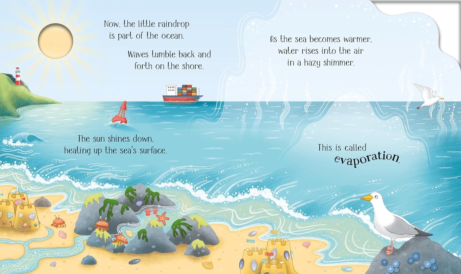 One Little Raindrop One little raindrop falls from the sky... Follow its incredible journey until it finally reaches the sea, where it evaporates to become part of a cloud and begin the cycle all over