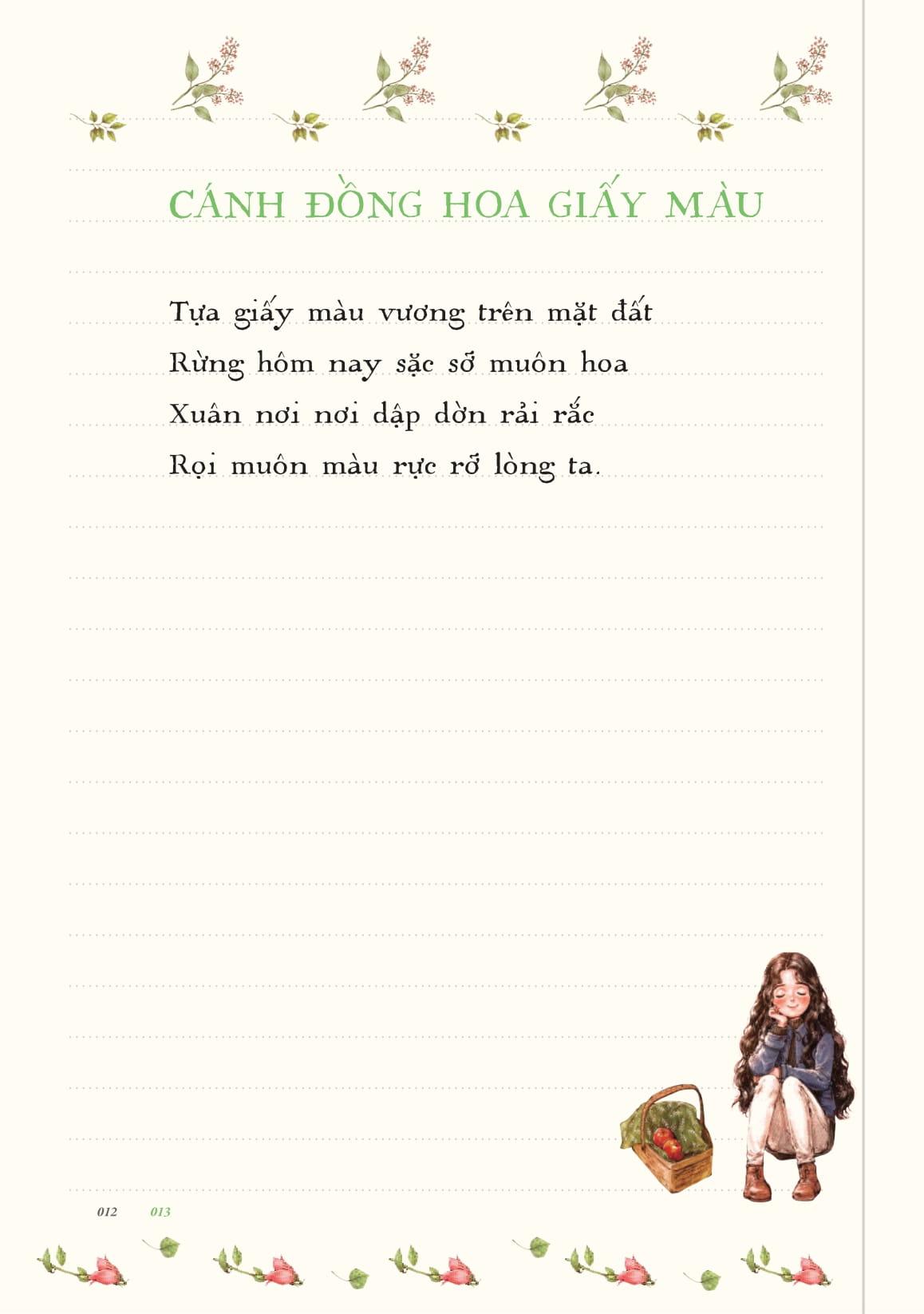 Cuốn sách đặc biệt này vừa là sách, vừa là sổ tay để bạn có thể ghi lại những dòng cảm nhận sau khi đọc từng bài thơ, hay chỉ đơn giản là ghi chép về cuộc sống thường ngày với muôn điều đẹp đẽ.