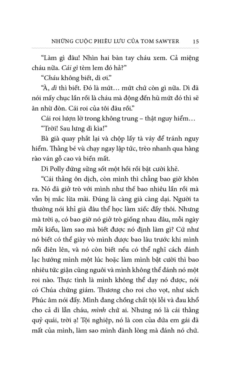 Toàn bộ tác phẩm tắm trong một không khí hoạt náo, tươi vui và lấp lánh những màu sắc rực rỡ của trẻ em. Tài kể chuyện của Mark Twain khiến người đọc vừa bị cuốn hút, vừa lo âu đồng thời liên tục bật cười trước những tình huống kịch tính liên tiếp. Tác giả còn lồng vào những đoạn văn châm biếm xã hội vô cùng hài hước và sâu sắc. Trên hết, ông miêu tả xuất sắc tính cách, tâm lý, hành động của một Tom Sawyer thông minh, nghịch ngợm nhưng dũng cảm và có một tấm lòng nhân hậu, giàu tình nghĩa.