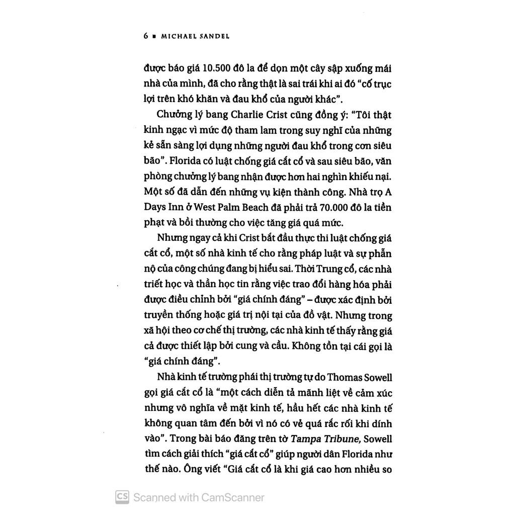 "Michael Sandel - có lẽ là giáo sư đại học nổi tiếng nhất ở Mỹ - đã mang lại "sự minh bạch về đạo đức cho sự lựa chọn mà chúng ta phải đối mặt, với tư cách là công dân trong xã hội dân chủ". Ông đã chỉ ra rằng sự chia rẽ chính trị không phải giữa cánh tả với cánh hữu mà giữa những người nhận ra không có gì quý hơn quyền cá nhân và lựa chọn cá nhân với những người tin vào một nền chính trị phục vụ lợi ích số đông" (Bưu điện Washington)