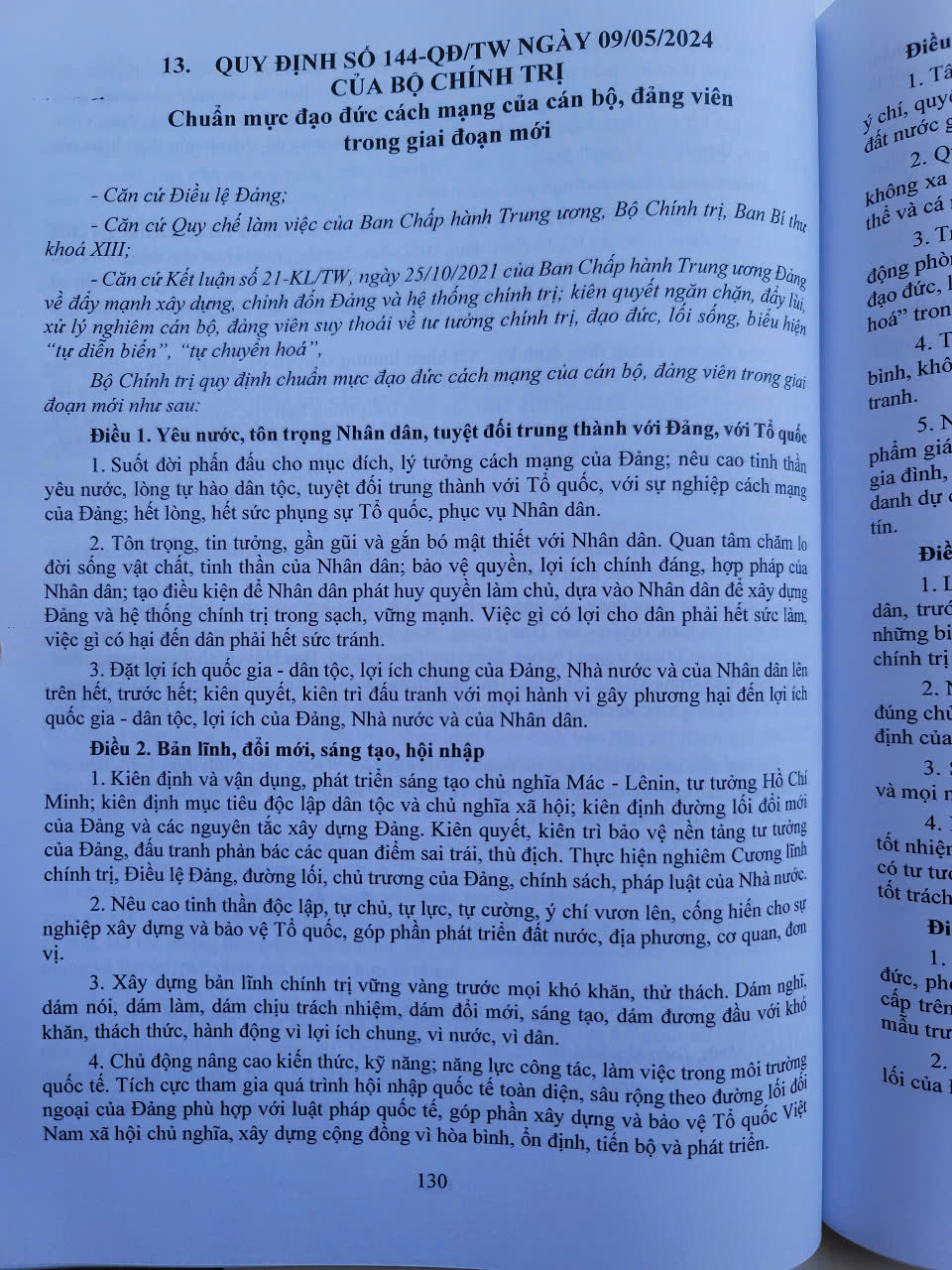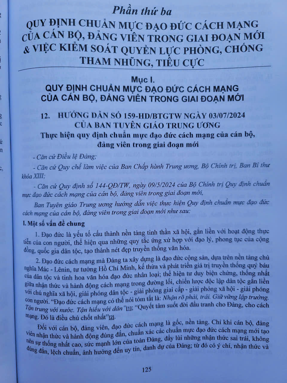 Phần thứ ba. Quy định chuẩn mực đạo đức cách mạng của cán bộ, đảng viên trong giai đoạn mới và việc kiểm soát quyền lực phòng, chống tham nhũng, tiêu cực