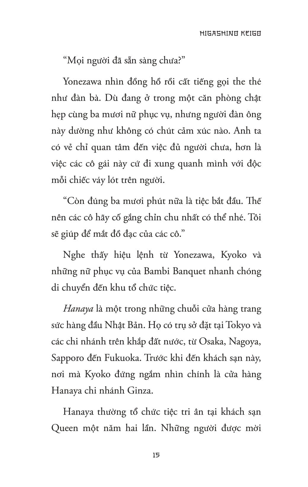 Makimura Eri, một nữ phục vụ đang làm việc dưới sự quản lý của công ty phục vụ tiệc Bambi Banquet, được phát hiện đã tử vong tại Phòng 203 của khách sạn Ginza Queen. Chính Marumoto Hisao, giám đốc điều hành của Bambi, là người đã tìm thấy thi thể của Eri.