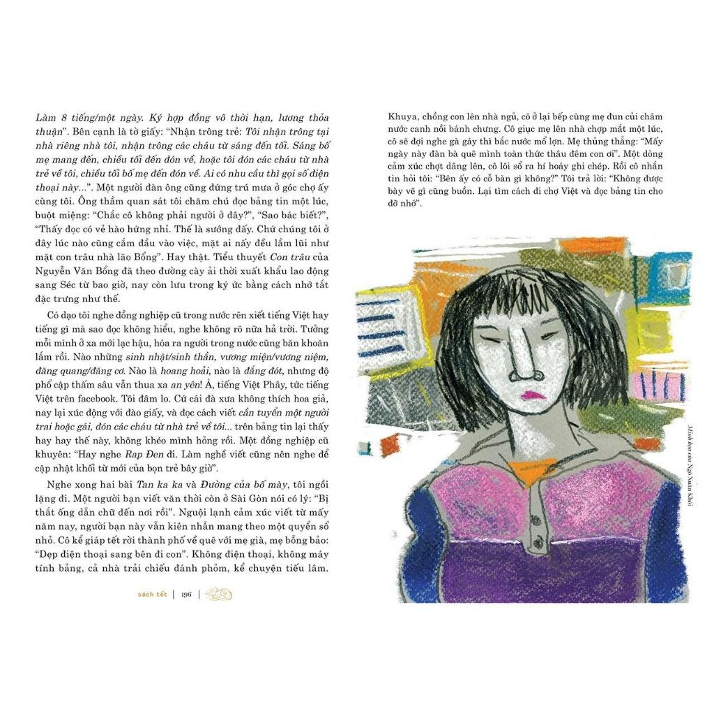 Ngoài sự góp mặt của các tác giả, họa sĩ tên tuổi như Cao Huy Thuần, Hồ Anh Thái, Phan Thị Vàng Anh, Thành Chương, Lê Trí Dũng, Đỗ Hoàng Tường… Sách Tết 2020 có sự tham gia của một số cây bút mới từ nhiều vùng miền đất nước. Nhờ đó, cộng thêm với kinh nghiệm của những người làm sách cũng như sự góp ý của độc giả cho ấn bản đầu tiên, Sách Tết 2020 đã trở nên phong phú, đa dạng và cũng chất lượng hơn. Sách mở đầu với phần Chờ đón giao thừa. Ở đấy, ta bắt gặp những dáng người tất tả về quê ăn tết trong cái lạnh se se của miền Bắc; ta sống lại những truyền thống xa xưa với sắc đào chấm phá trong sương, với gái làng đào quần lụa xòa kín gót, áo nâu thắt eo, tung tẩy đôi sảo tre ra bãi sông kĩu kịt vớt váng phù sa, với những khách văn chương đất Bắc, và với những cảnh quê nghèo thủa nào xa xôi lắm. Nhịp sách lại nối dài với Thơ và Văn, với những cơn giông mùa xuân tưới tắm tâm hồn trong những xúc cảm. Ngày xuân ấy có kẻ bỏ phồn hoa, bỏ phố thị lên miền Tây Bắc để được trưa uống rượu, sáng ra nghe con họa mi trong trẻo hót giữa rừng. Không chỉ gói gọn ở những áng thơ, văn, điểm mới của sách tết năm nay là phần bình Nhạc, Họa và Thơ với những bài cảm nhận sâu lắng và độc đáo về các bản nhạc, các họa phẩm, các bài thơ nổi tiếng về chủ đề mùa xuân và cuộc sống để bạn đọc có thêm những giây phút thú vị. Và cứ như thế, trong giỏ quà tết, ngoài những bánh, những rượu thì xuất hiện thêm một món quà tinh thần là quyển Sách Tết nho nhỏ. Trên bàn trà, ngoài mứt tết, hạt dưa, còn có sự góp mặt khiêm nhường của Sách Tết. Bên cạnh thú du xuân, người ta còn có thêm cái thú tao nhã: đọc – ngẫm Sách Tết. Người già đọc để hoài nhớ tết xưa; người trẻ đọc để trân quý tết nay.