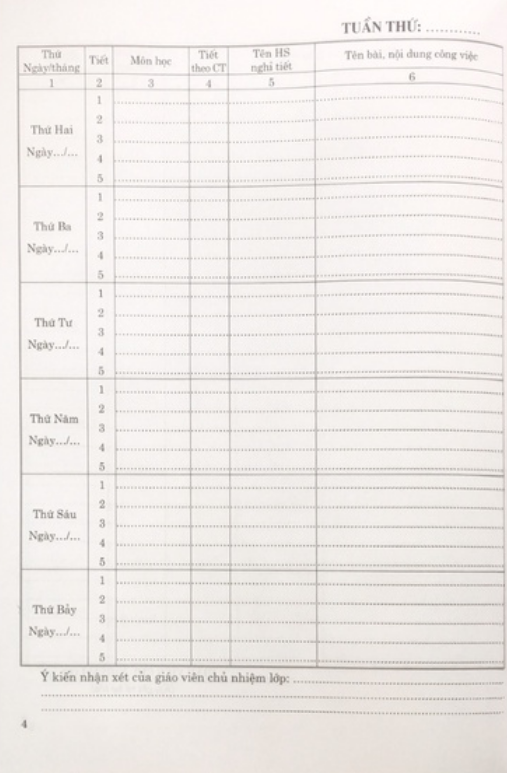 Sổ ghi đầu bài trung học cơ sở mẫu chuẩn của bộ giáo dục và đào tạo việt nam Sổ ghi đầu bài có phần đánh giá xếp loại của giáo viên bộ môn và