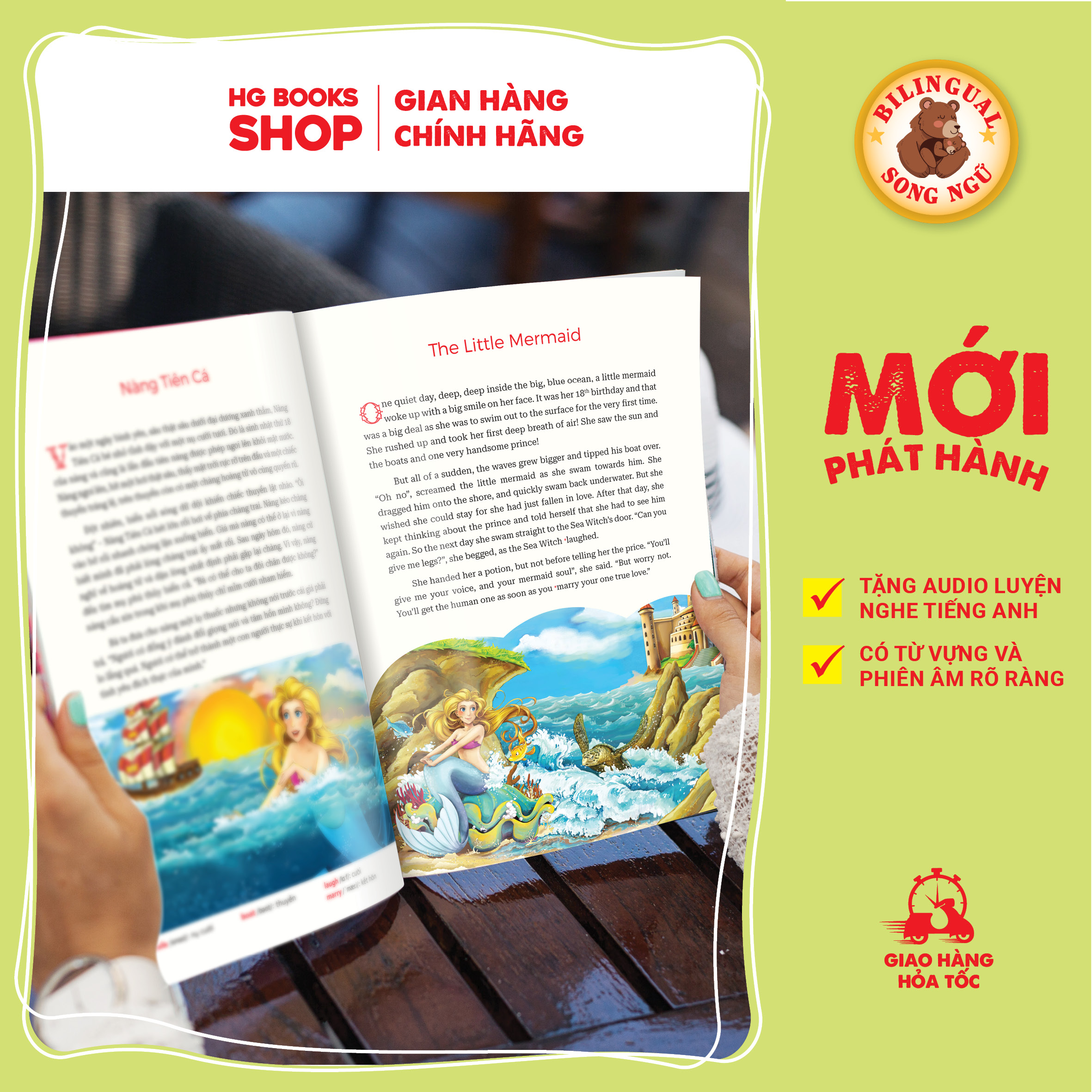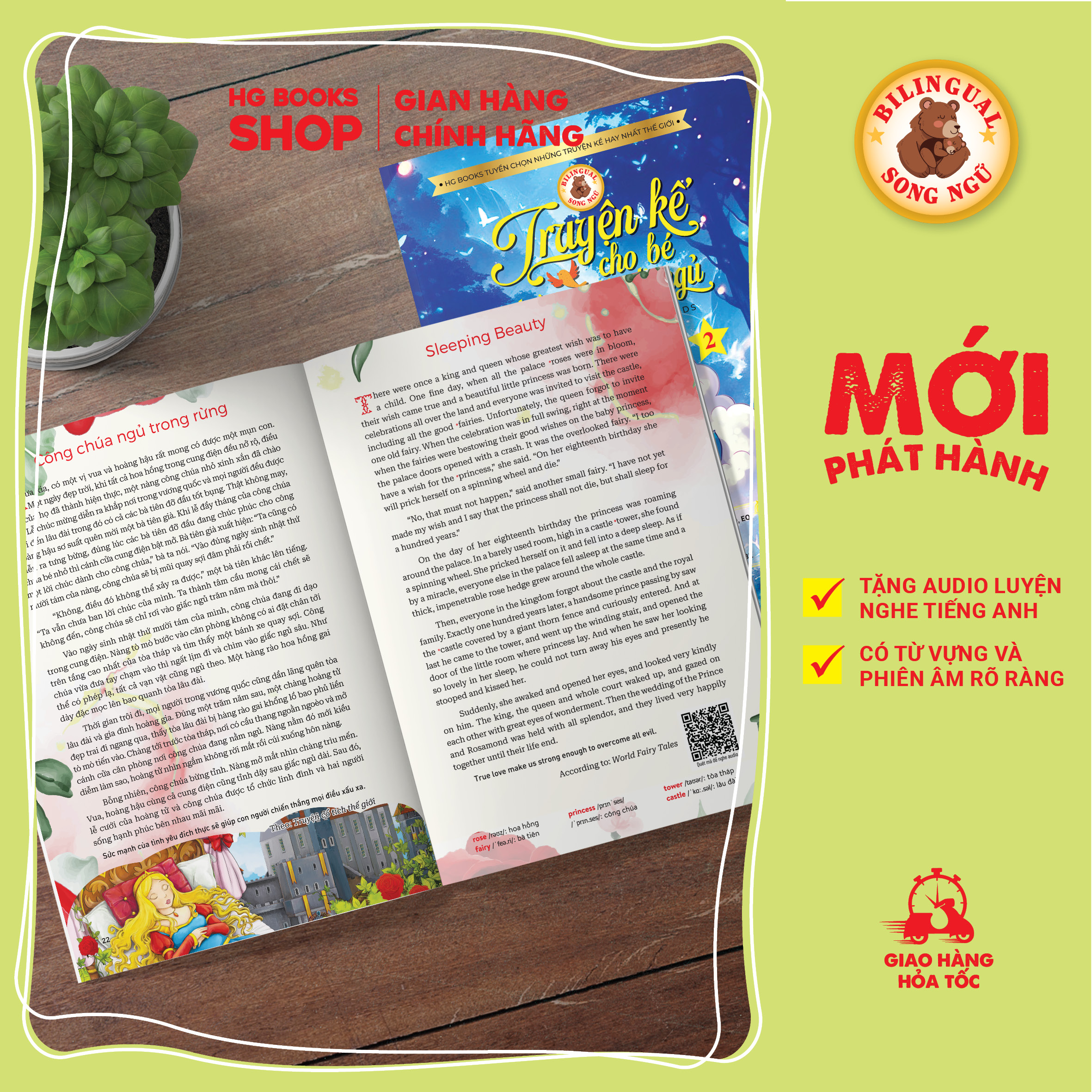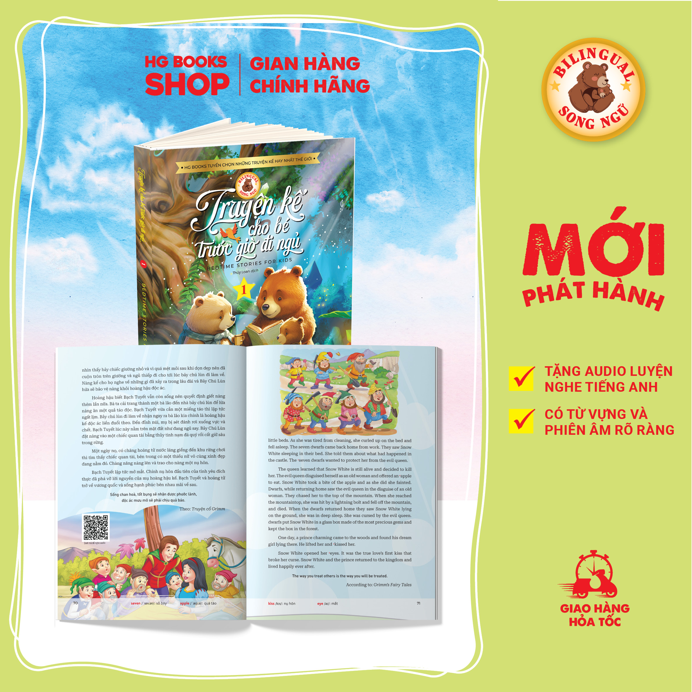 Cuối mỗi truyện đều có phần note từ vựng, phiên âm kèm link download phiên bản audio. Đây hứa hẹn sẽ là món quà vô cùng ý nghĩa mà bố mẹ dành cho các bé.