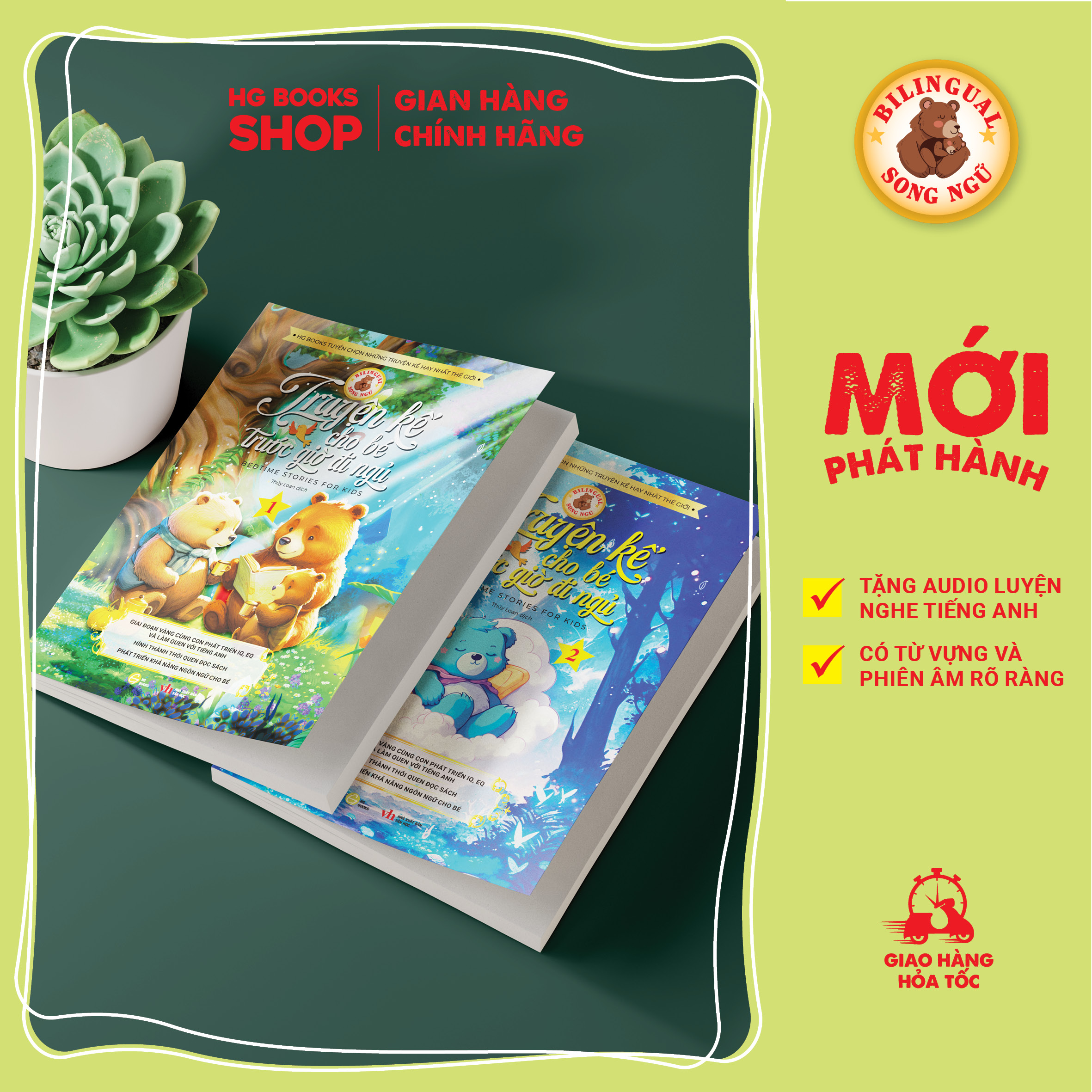 Truyện kể cho bé trước giờ đi ngủ (Bedtime Stories for Kids) là bộ sách song ngữ Việt Anh gồm 2 cuốn với 80 truyện kể hay nhất được HG Books tuyển chọn.