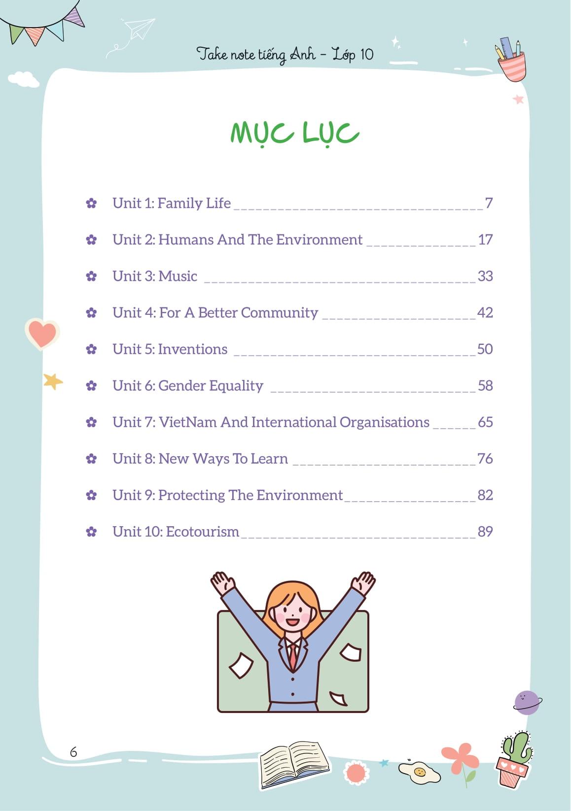 Take Note Tiếng Anh Lớp 10 là cuốn sách được thiết kế đặc biệt dành cho học sinh lớp 10 đang học bộ sách giáo khoa Global Success, nhằm hỗ trợ các bạn trong quá trình học và ôn tập môn tiếng Anh – một trong những môn học được đánh giá là nhiều thử thách, đặc biệt khi chuẩn bị cho kỳ thi THPT Quốc gia.