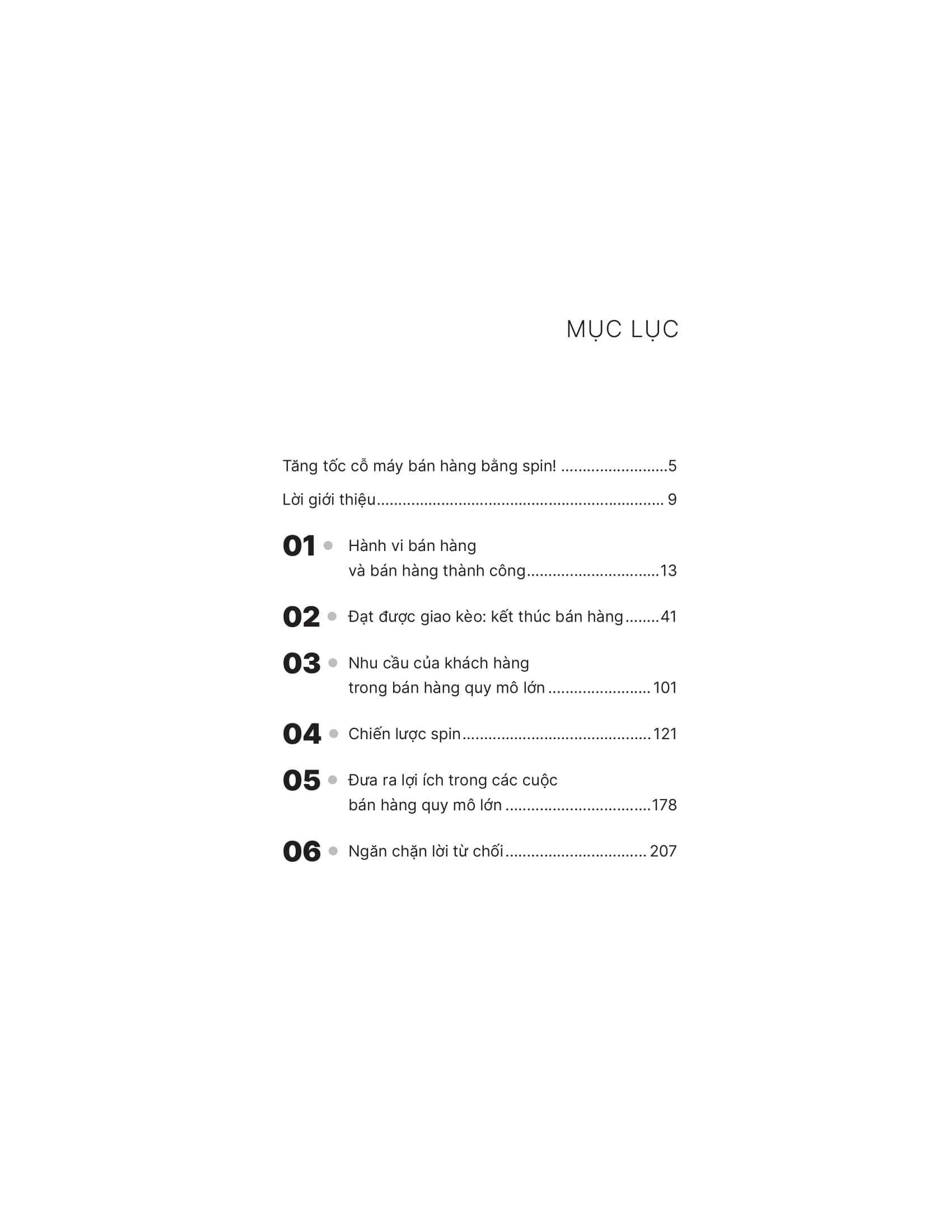 Đọc Tăng tốc bán hàng bằng SPIN, bạn có thể thấy được sự khác nhau giữa bán hàng quy mô lớn và bán hàng quy mô nhỏ. Bạn cũng sẽ hiểu được tại sao có những thủ thuật bán hàng có thể thành công với các cuộc bán hàng quy mô nhỏ nhưng lại kém hiệu quả với các cuộc bán hàng quy mô lớn và rất, rất nhiều điều thú vị khác chỉ có thể tìm thấy trong Tăng tốc bán hàng bằng SPIN.